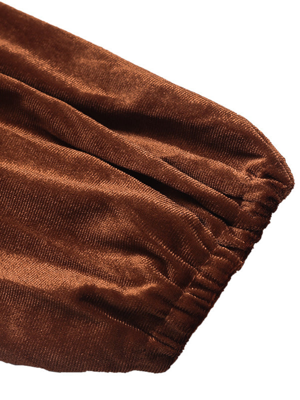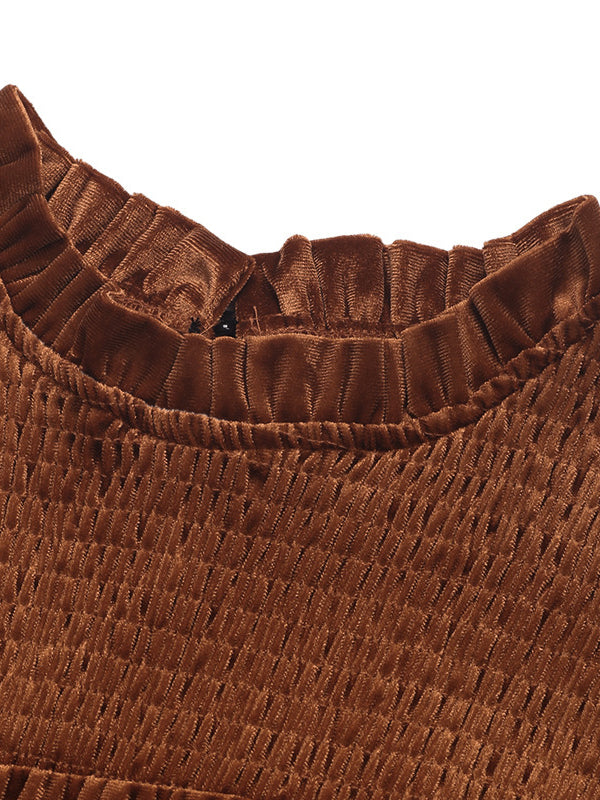 A-Line Long Sleeves Pleated Solid Color Split-Joint Velvet Mock Neck Mini Dresses