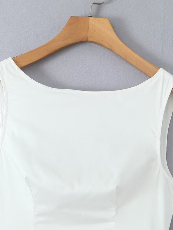 A-Line Loose No Belt Pleated Solid Color Zipper Round-Neck Midi Dresses