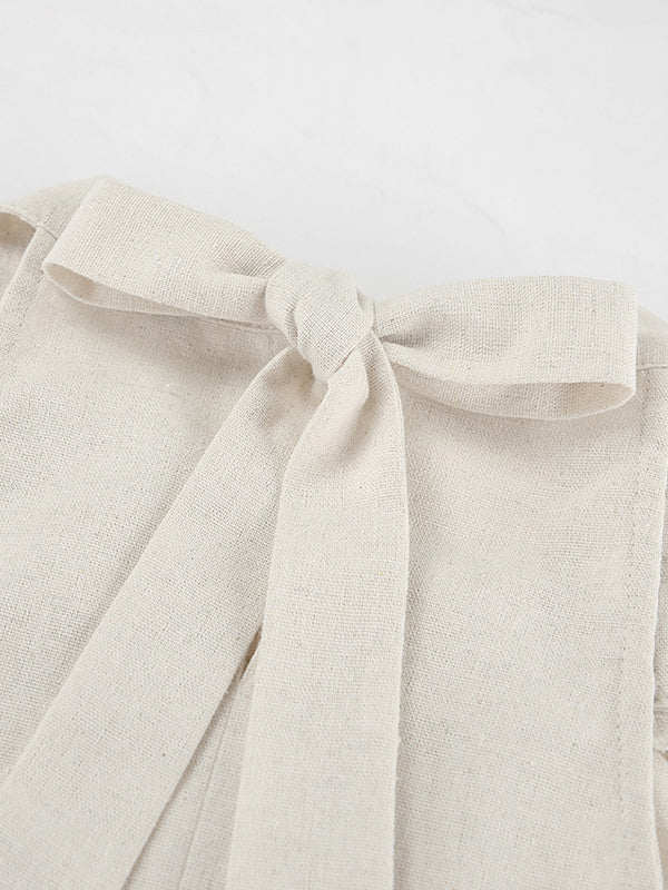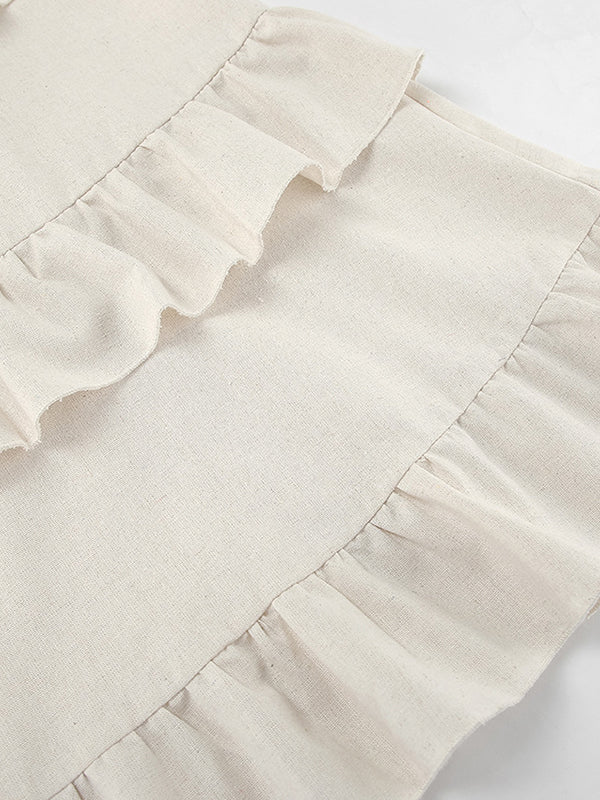 A-line Loose Ruffle Trim Solid Color Tied Zipper Spaghetti-Neck Mini Dresses