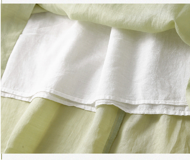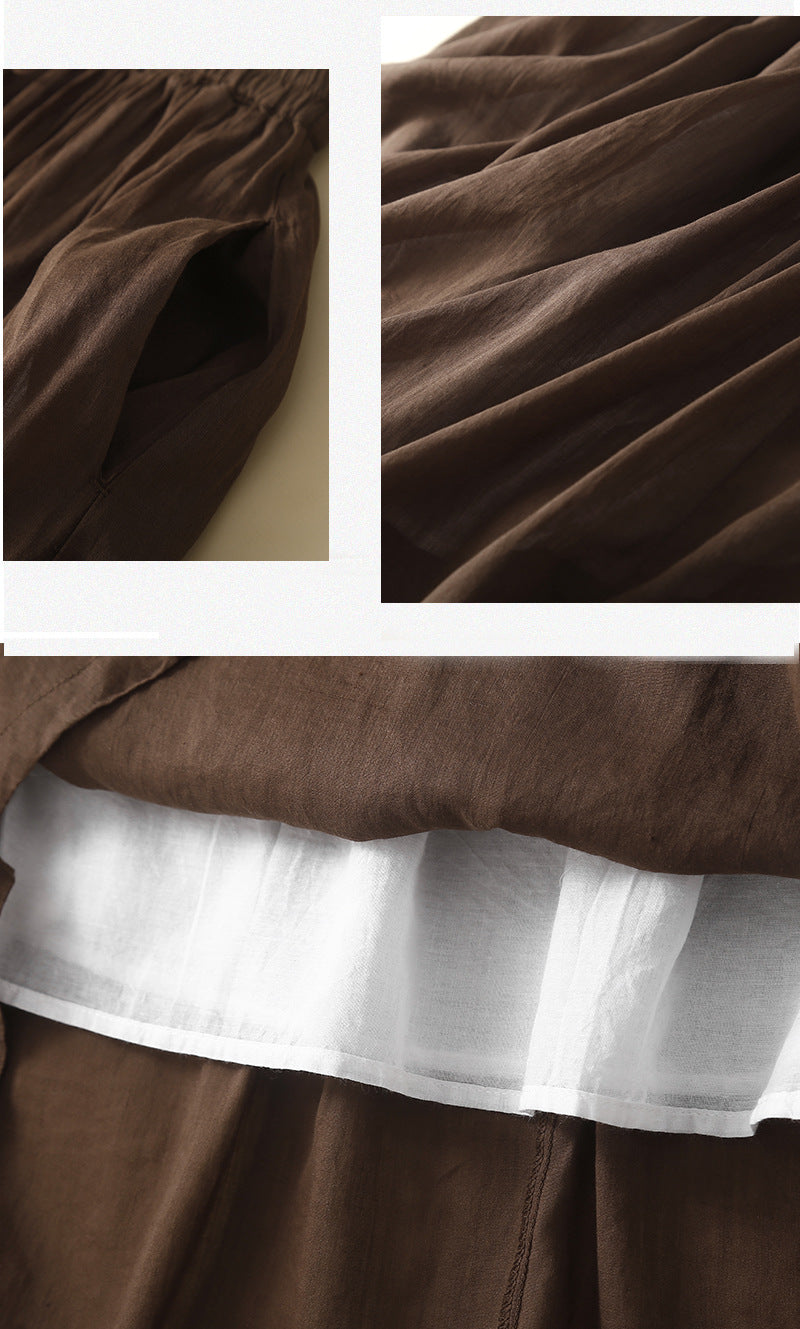 Amoi Thin Double-layer Lined Artistic Cotton Linen Skirt
