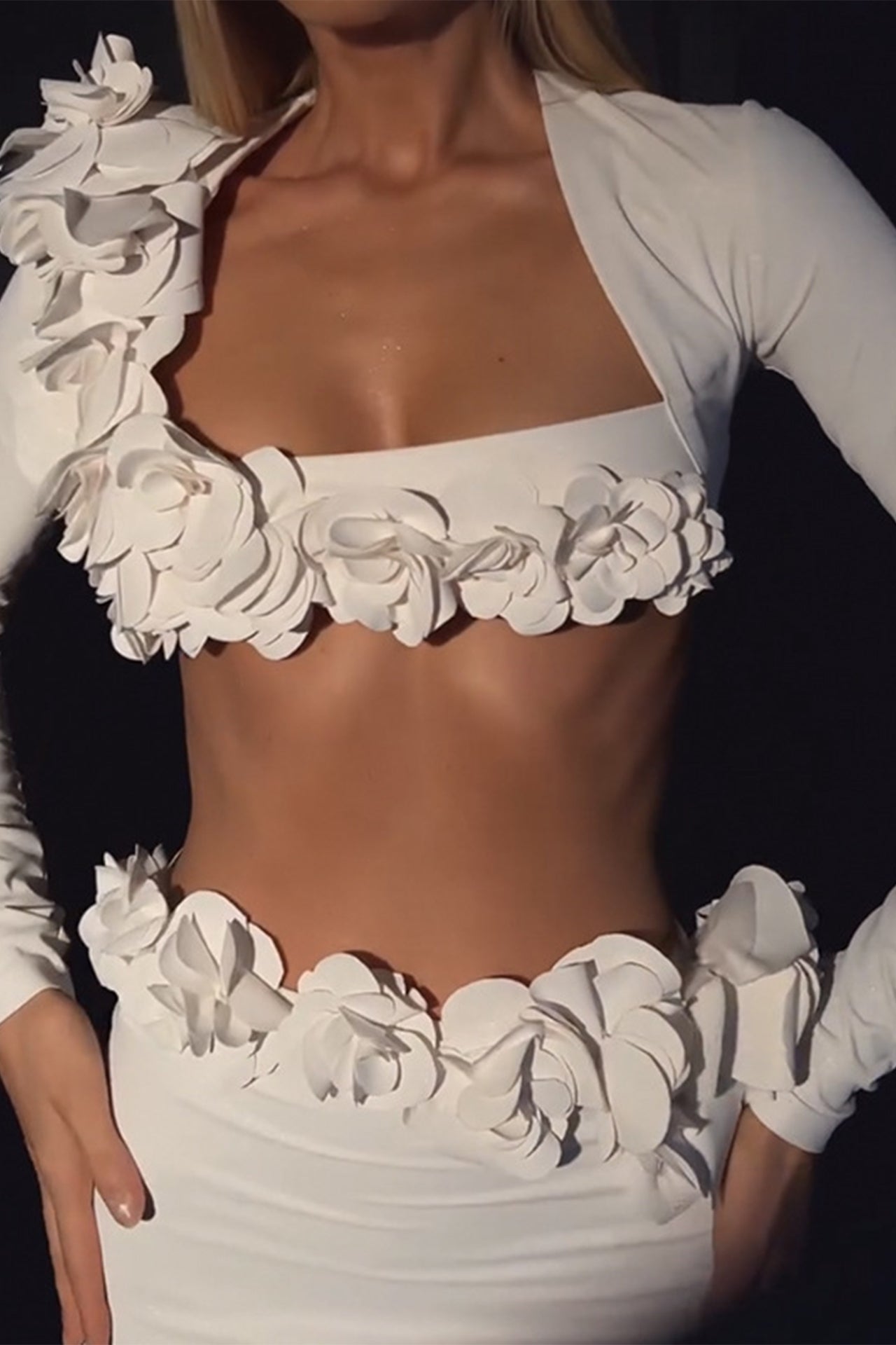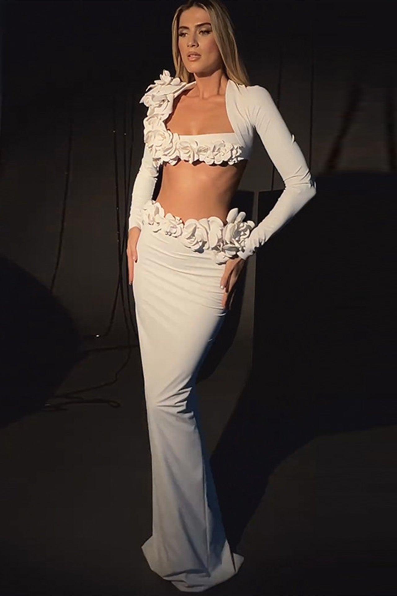 Elegance meets enchantment in this Anika Flower Maxi Skirt Two Piece Set. Crafted with luxurious materials. it enhances your allure and adds an air of sophistication. Whether it's a gala. a formal event. or an evening of pure glamour. this dress is your key to stand out with grace.
