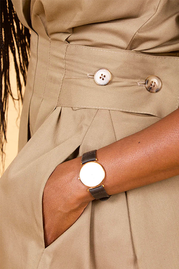 There are amazing details that one can't miss on both sides of the waist. We especially love the solid color fabric and think this piece will be a new favorite in your closet!