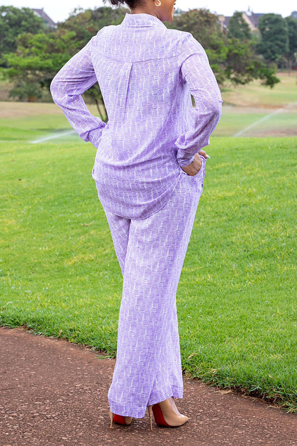 Stay on trend this season in our new casual. shirt collar set. We especially love the flower print fabric and think this piece will be a new favorite in your closet!