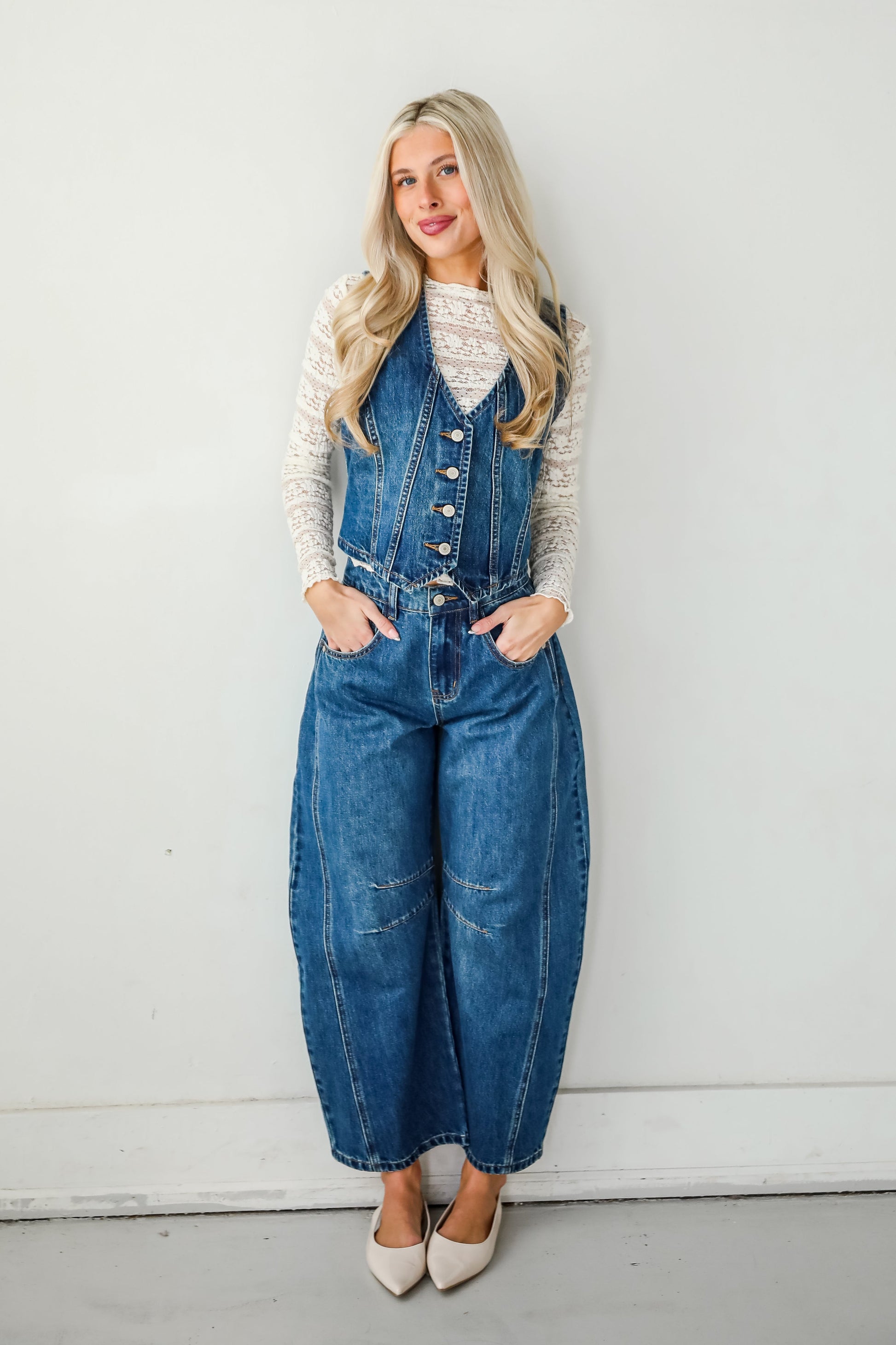 The Aubrey Dark Wash High-Rise Barrel Jeans are the perfect blend of trendy and timeless! Designed with a flattering high-rise waist. they highlight your silhouette while offering a comfortable fit. The barrel leg shape adds a modern twist. creating a relaxed yet polished look that's perfect for any occasion. The rich dark wash lends versatility. making these jeans easy to dress up with a blouse and heels or dress down with a graphic tee and sneakers. Complete with classic five-pocket styling and subtle fading. these jeans are a must-have for your everyday wardrobe!