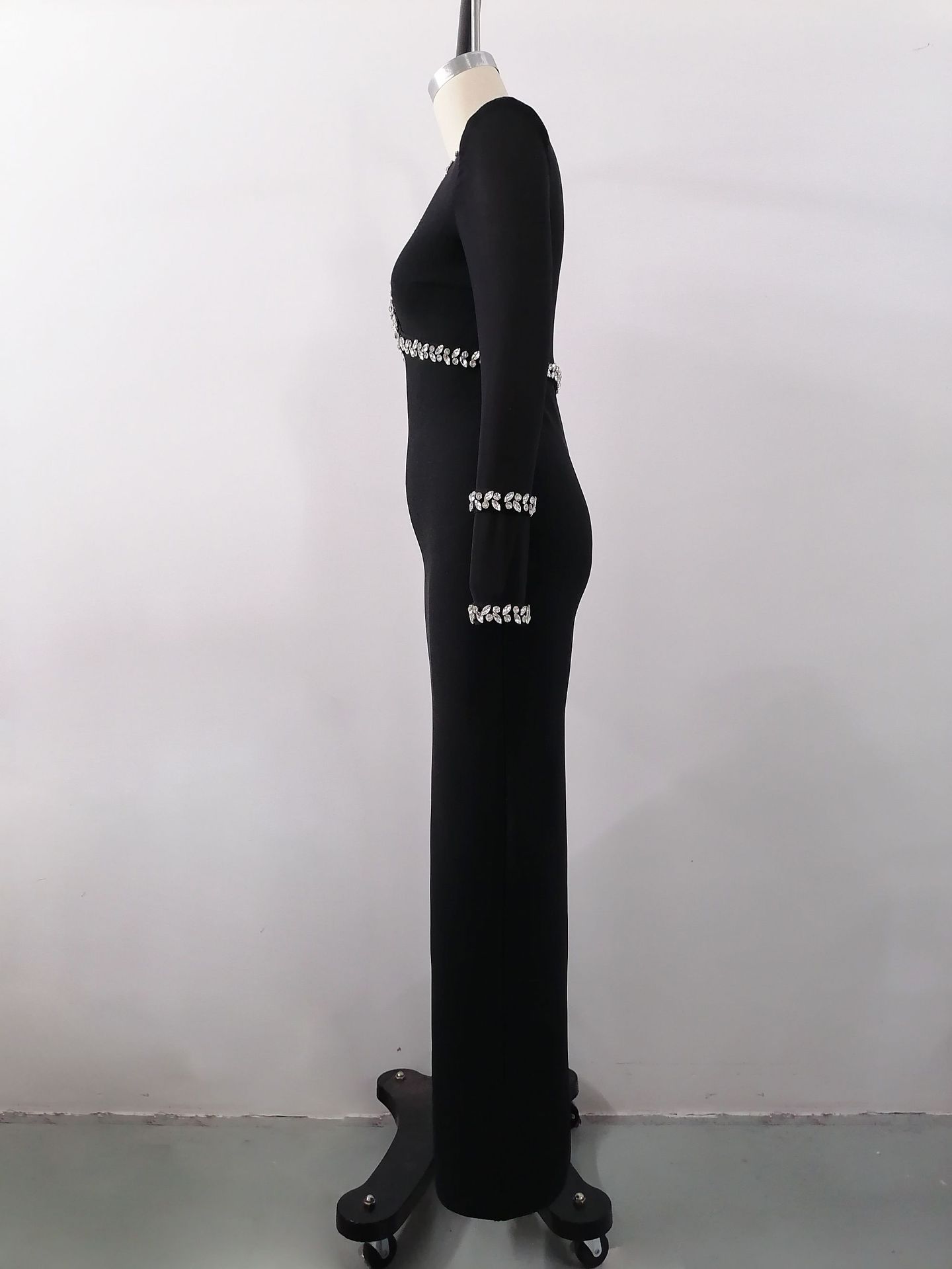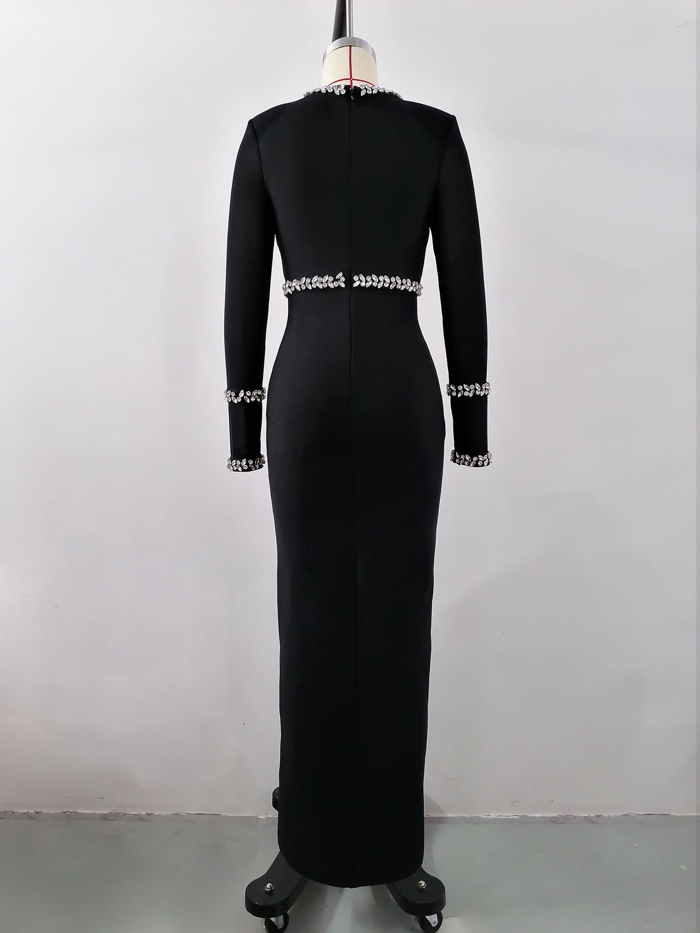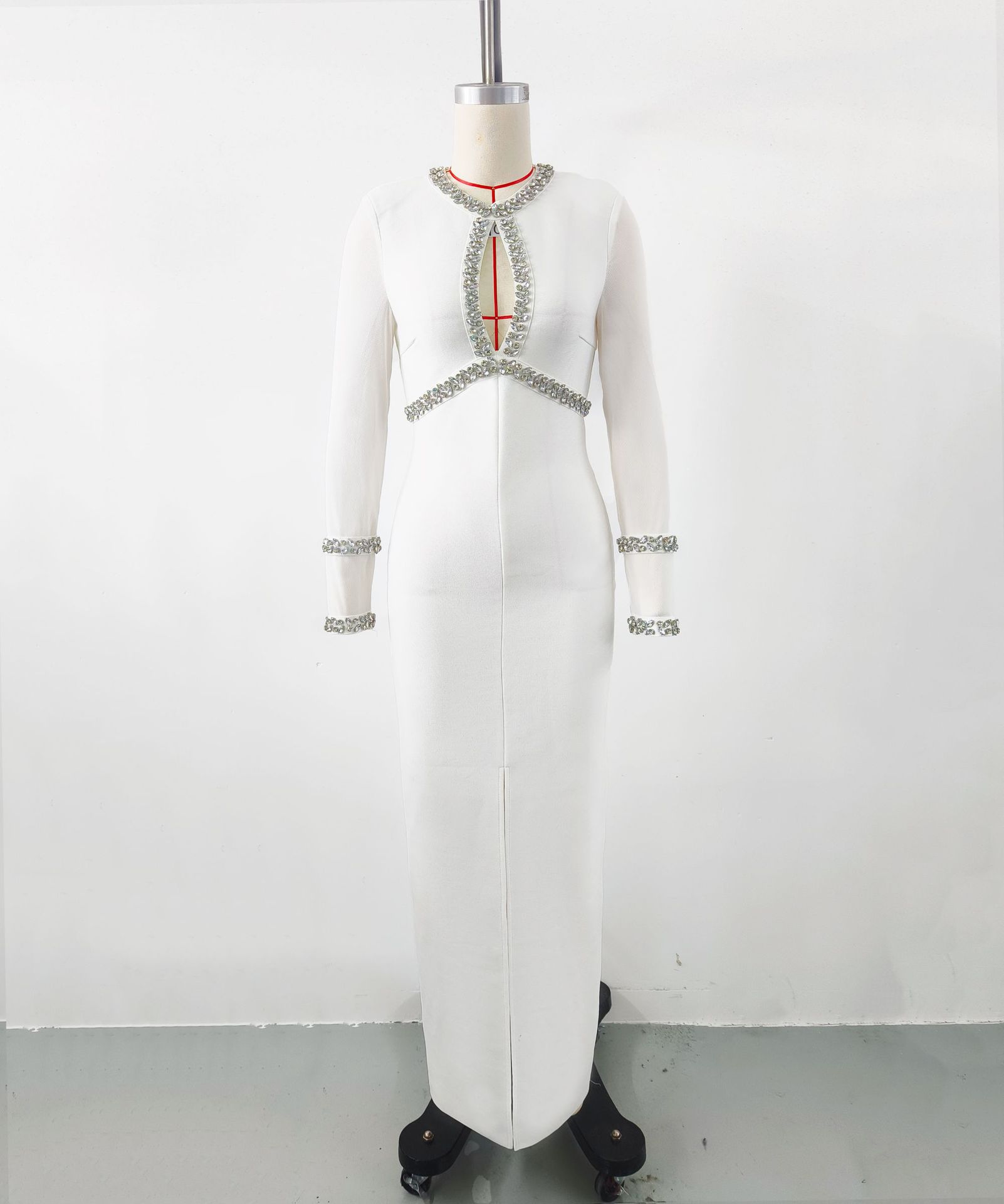 Autumn Winter Diamond Studded Hollow Waist Bandage Dress