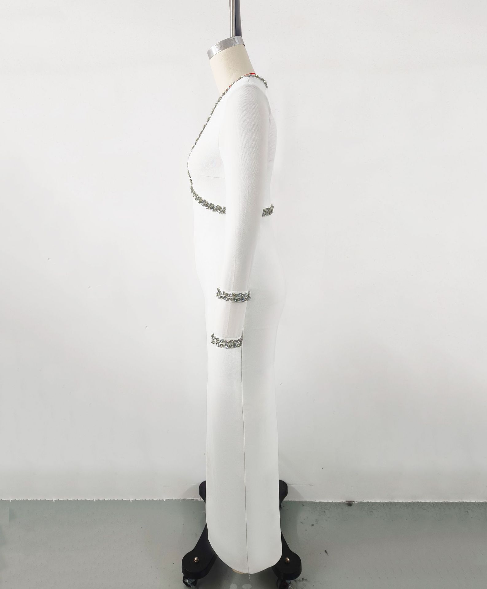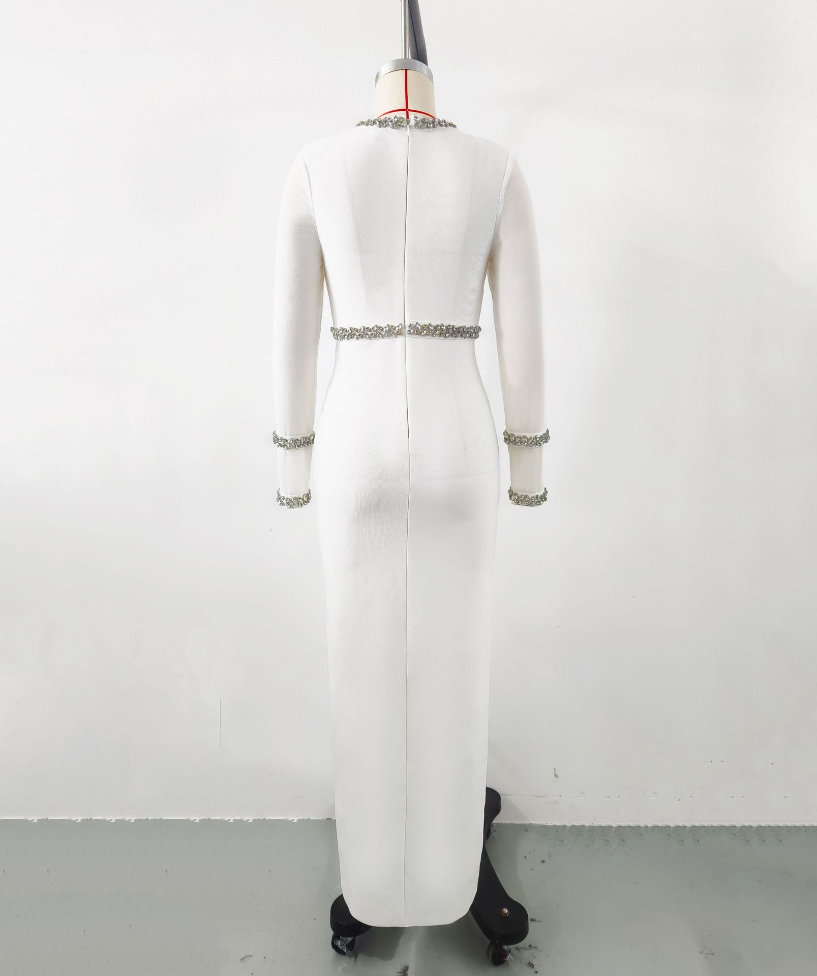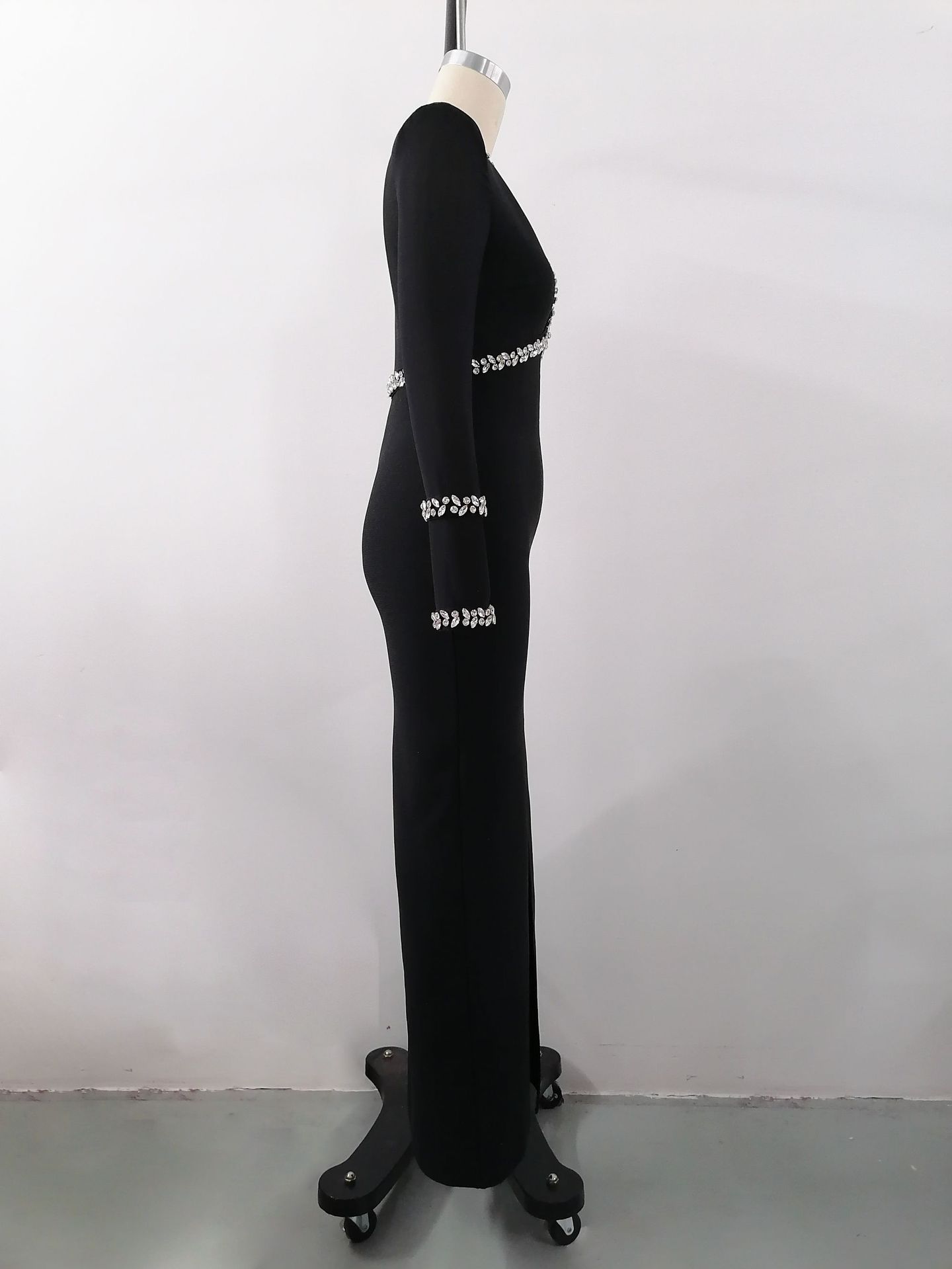 Autumn Winter Diamond Studded Hollow Waist Bandage Dress