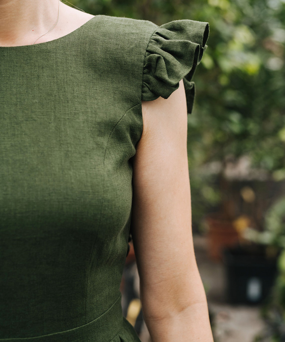 Backless Ruffled Sleeves Linen Dress