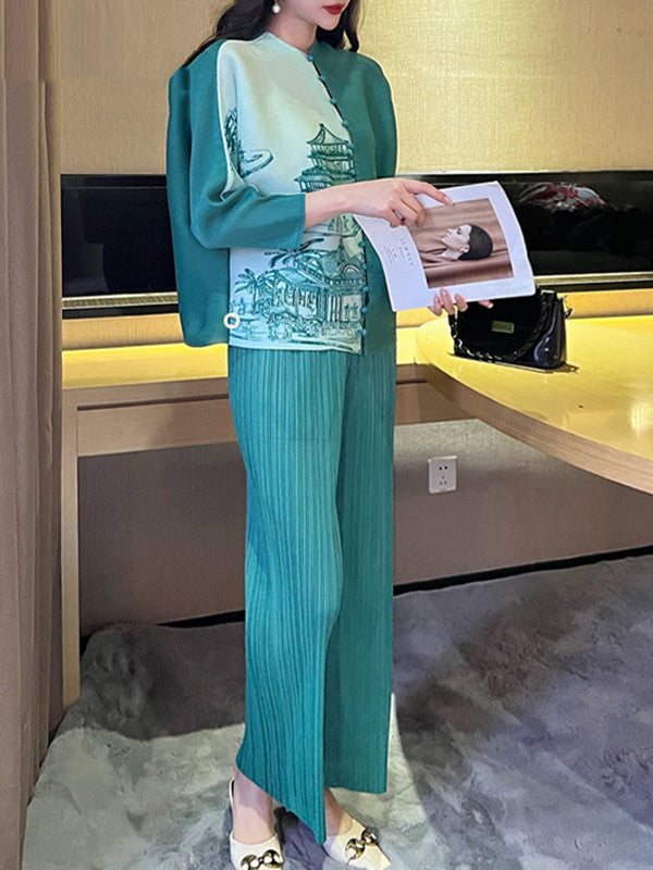 | Feature | Buttoned . Contrast Color . Printed . Pleated |