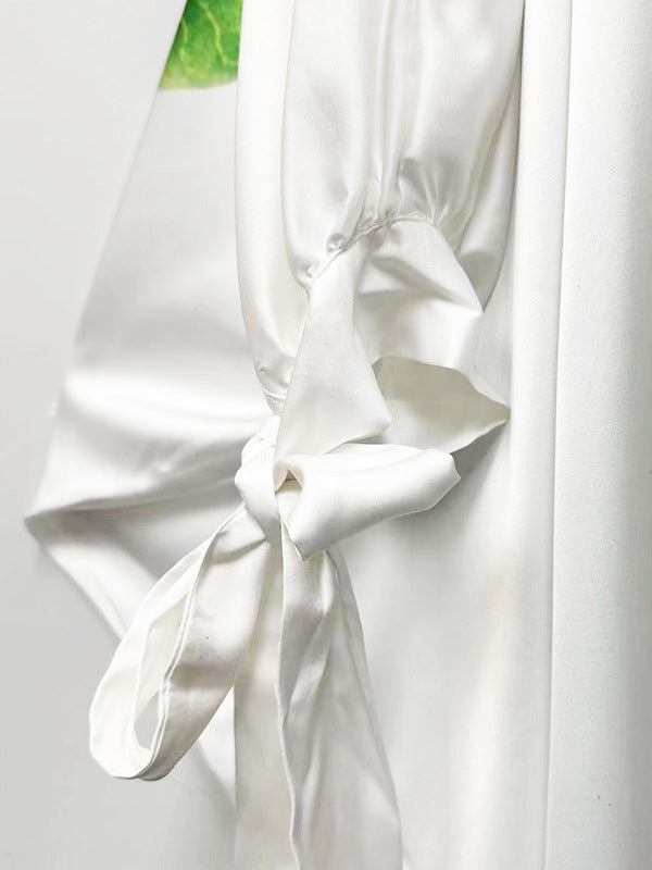 Batwing Sleeves Loose Flower Print Tied Round-Neck Maxi Dresses