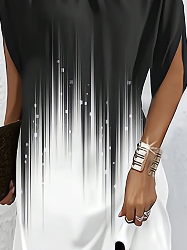 Batwing Sleeves Loose Gradient Printed Round-Neck Mini Dresses