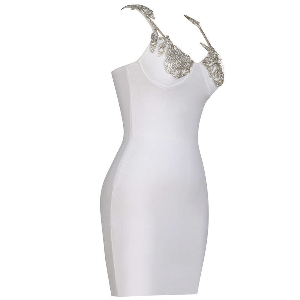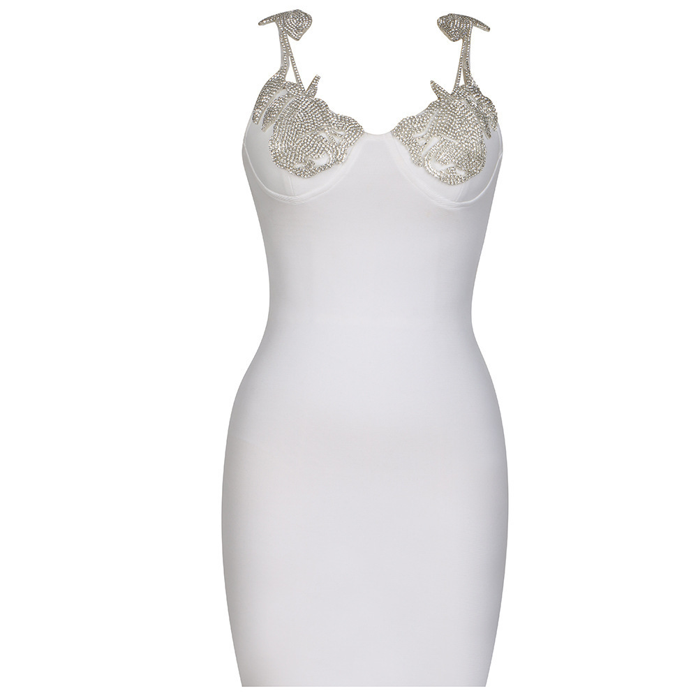 Beaded Applique Sleeveless Slim Elastic Bandage Sling Dress