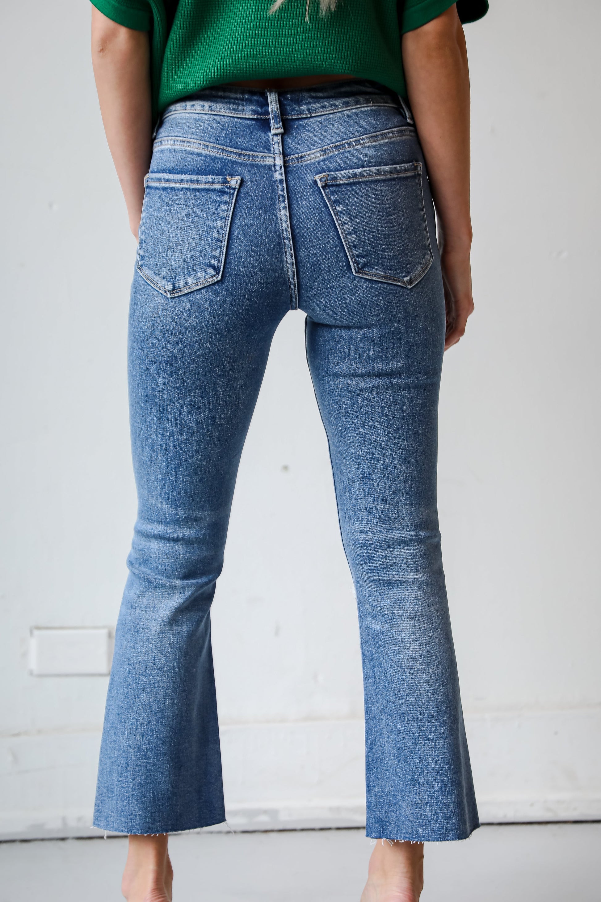 Introducing the Bella Medium Wash Distressed High-Rise Flare Jeans – the epitome of effortlessly cool and contemporary style! These jeans bring together the classic charm of a medium wash with the playful flare silhouette. resulting in a fashion-forward piece that's perfect for any casual occasion. Crafted from premium denim. these jeans boast a comfortable fit that doesn't compromise on style. The medium wash gives them a versatile and timeless appeal. making them a reliable choice for your everyday wardrobe. The carefully distressed detailing adds a touch of urban edge. providing a lived-in look that's both chic and relaxed. The cropped length draws attention to your ankles. making these jeans ideal for showcasing your favorite footwear. Whether paired with ankle boots. sandals. or sneakers. the cropped flare design ensures your shoes take center stage!