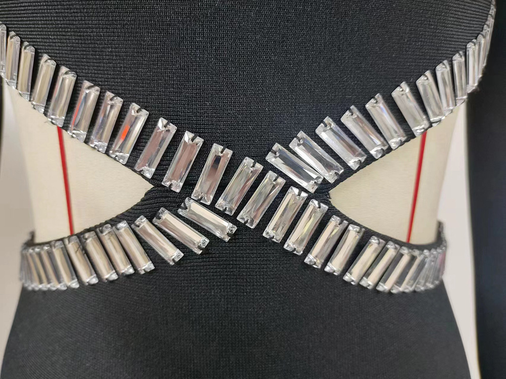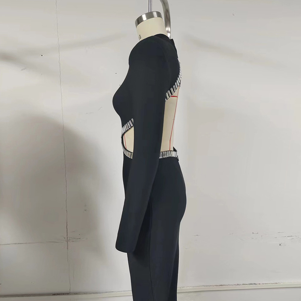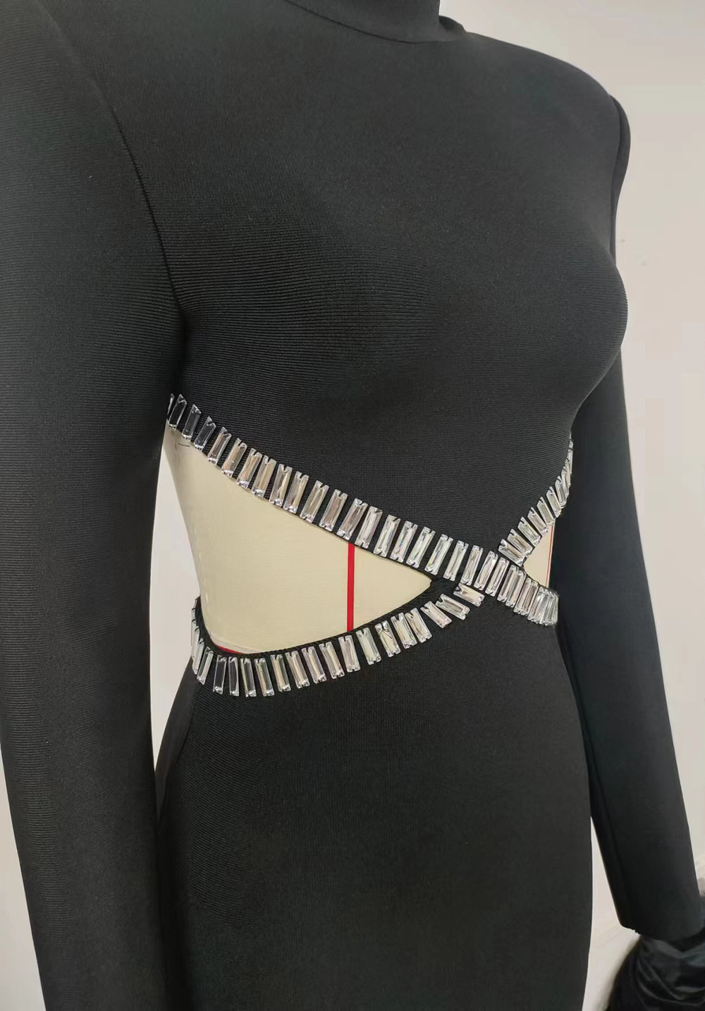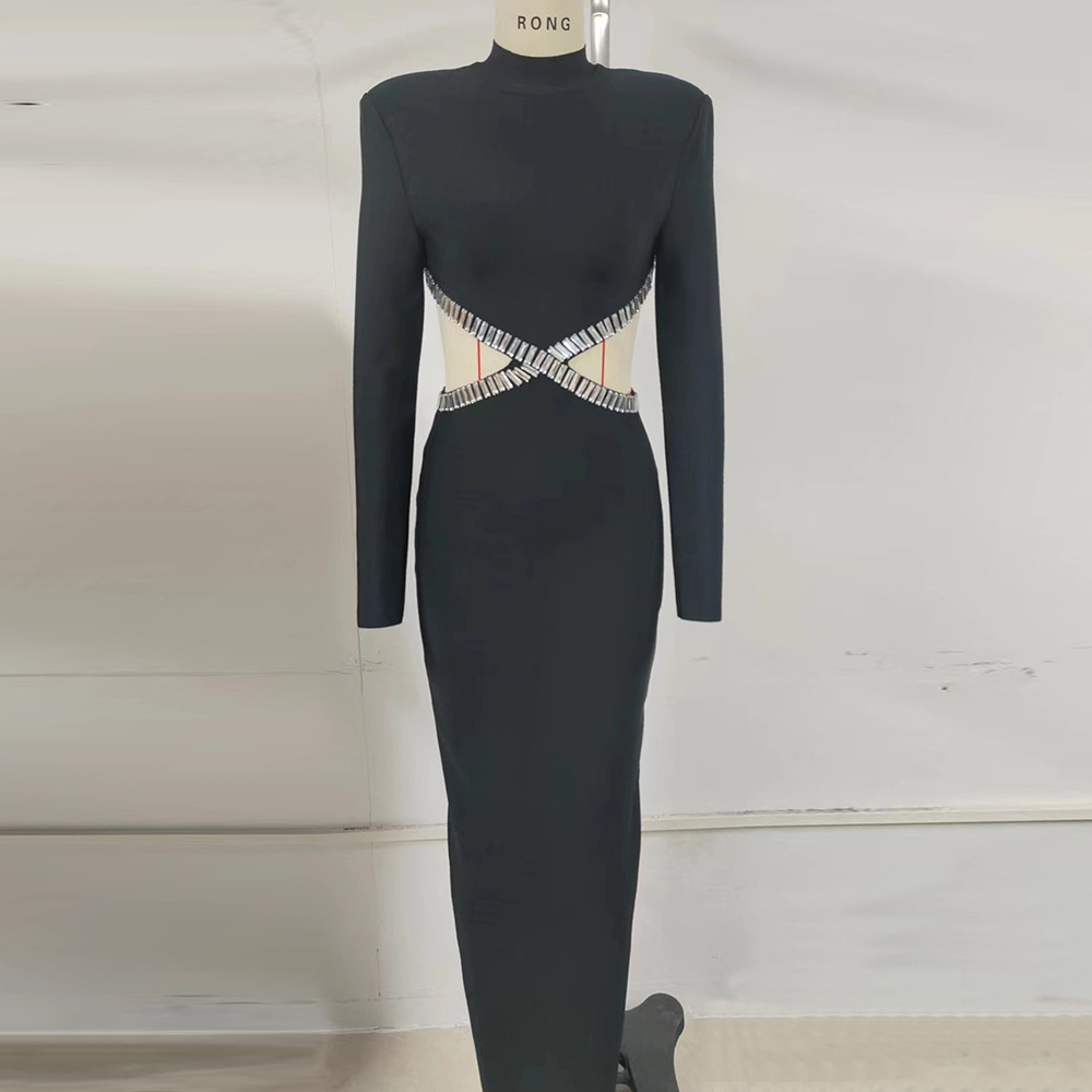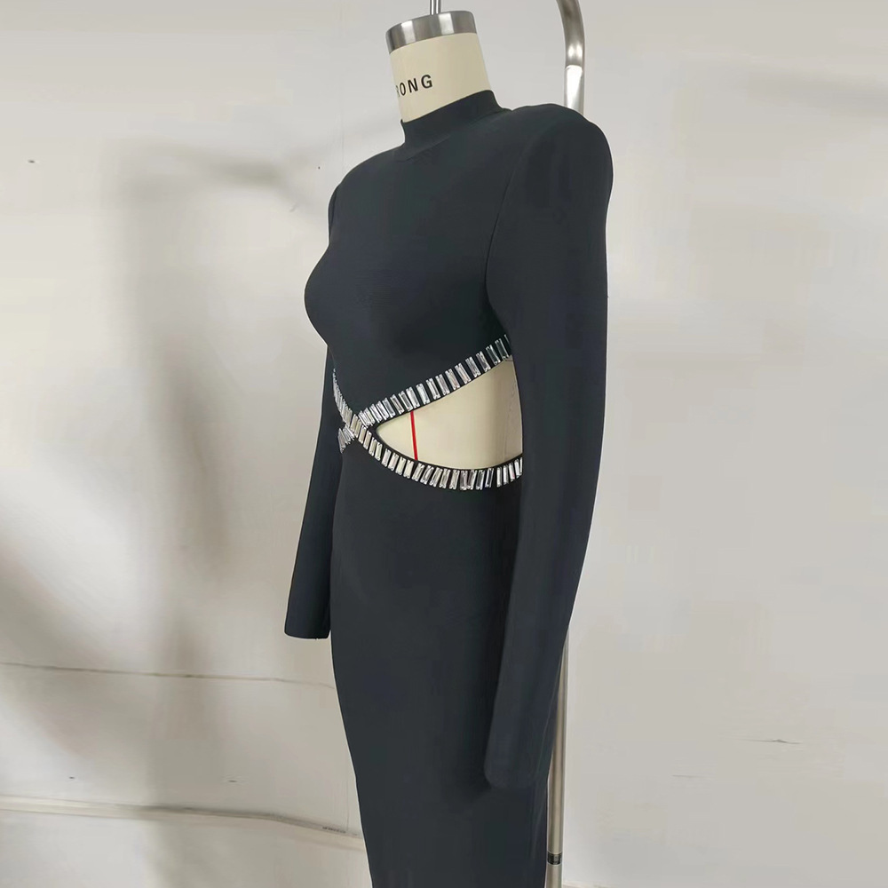 Black Bandage Dress Sexy Long Sleeve Hollow Diamond Slim