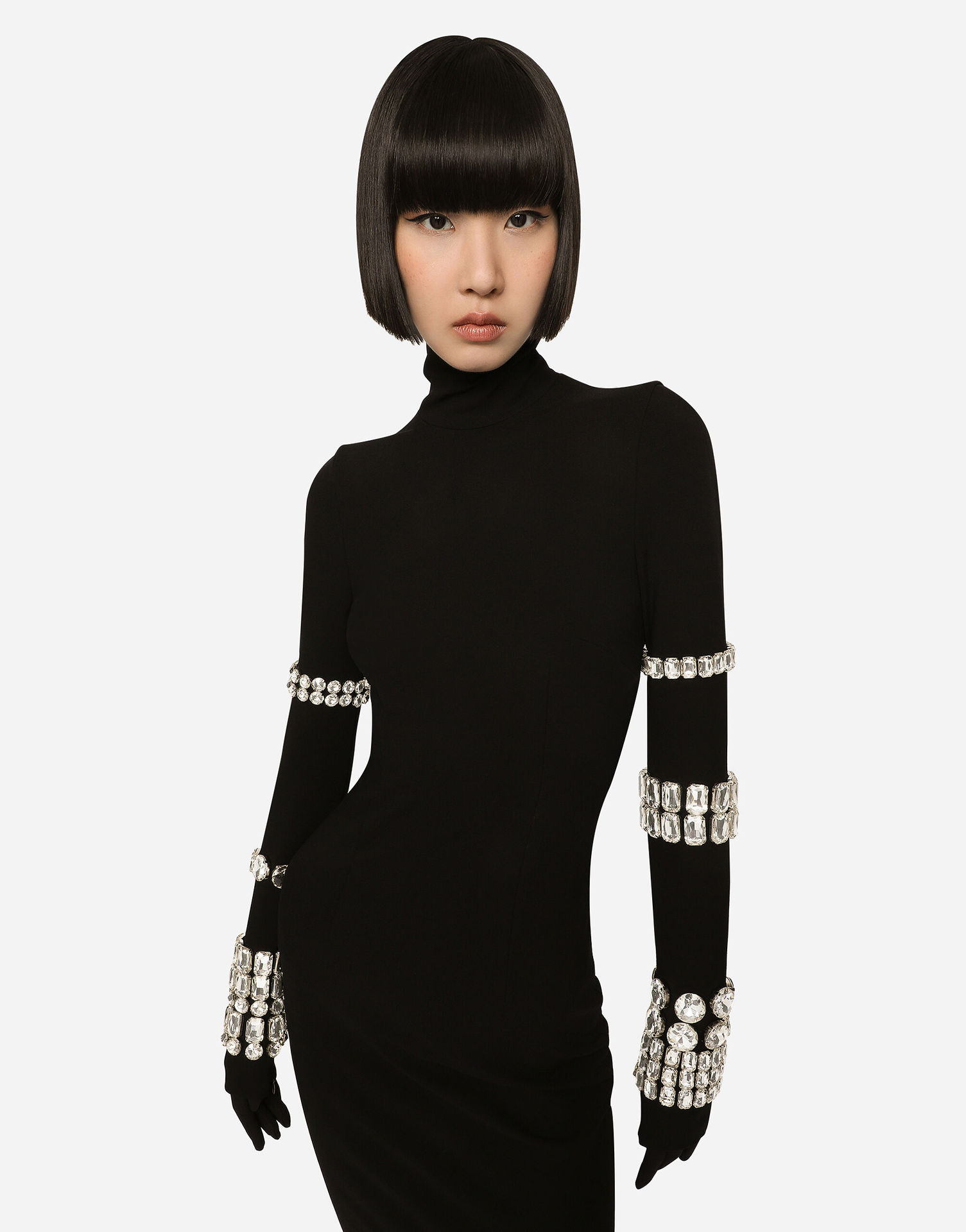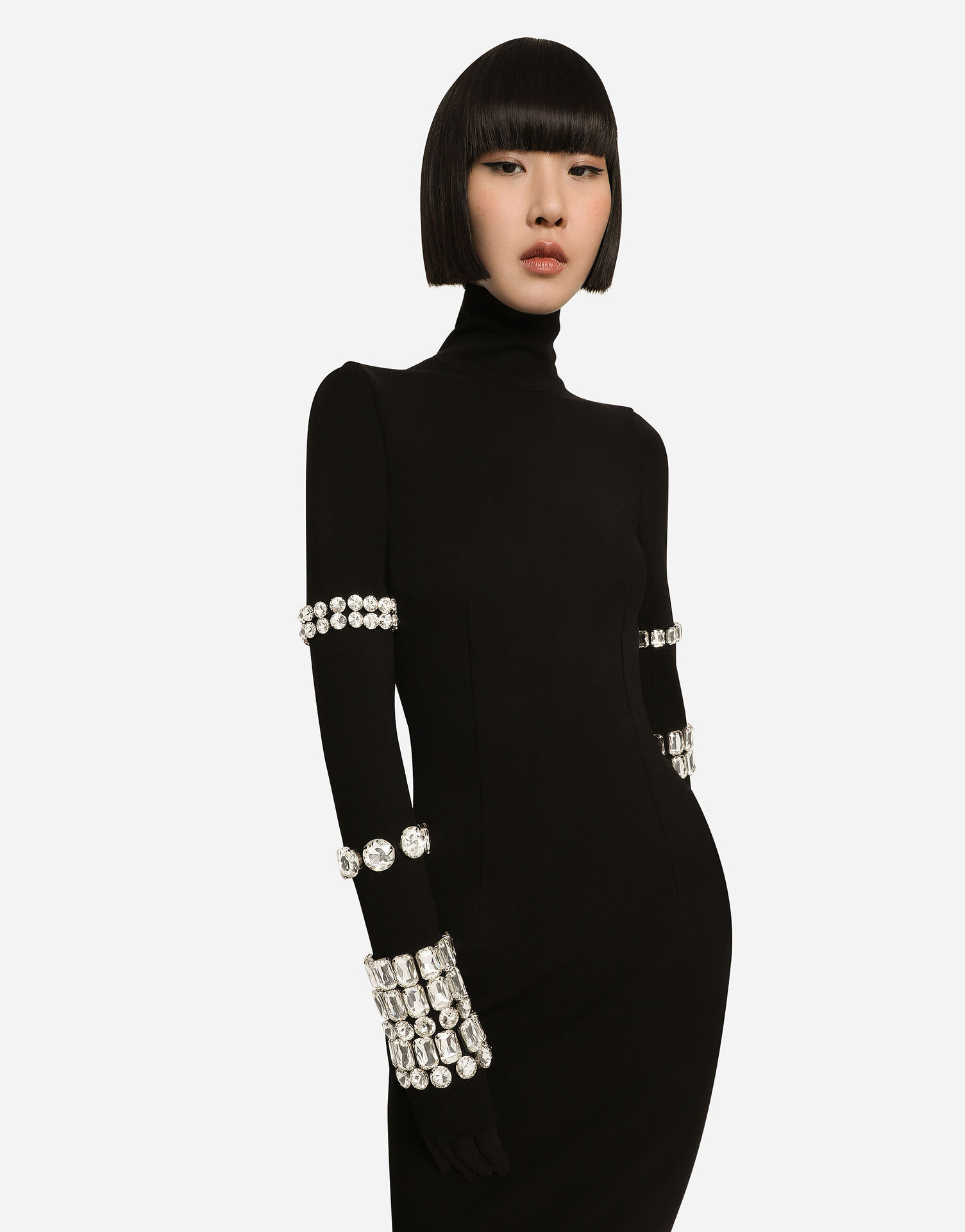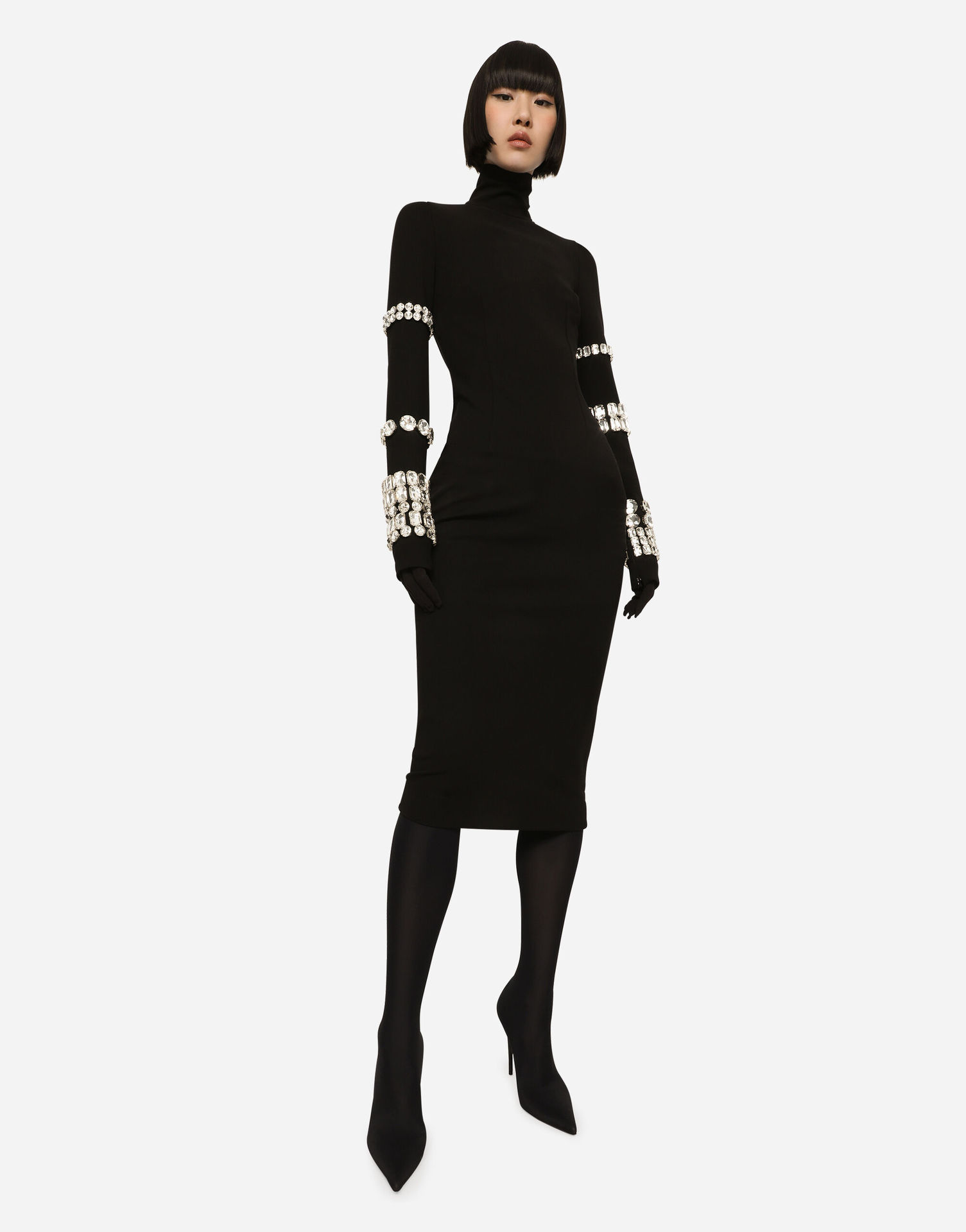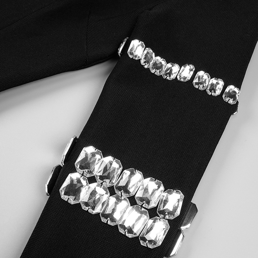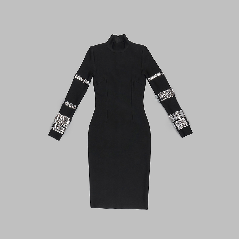 Black Mid-Length Turtleneck Seam Drill Bandage Dress