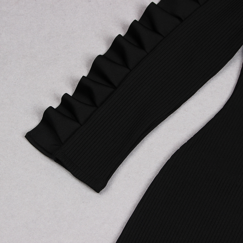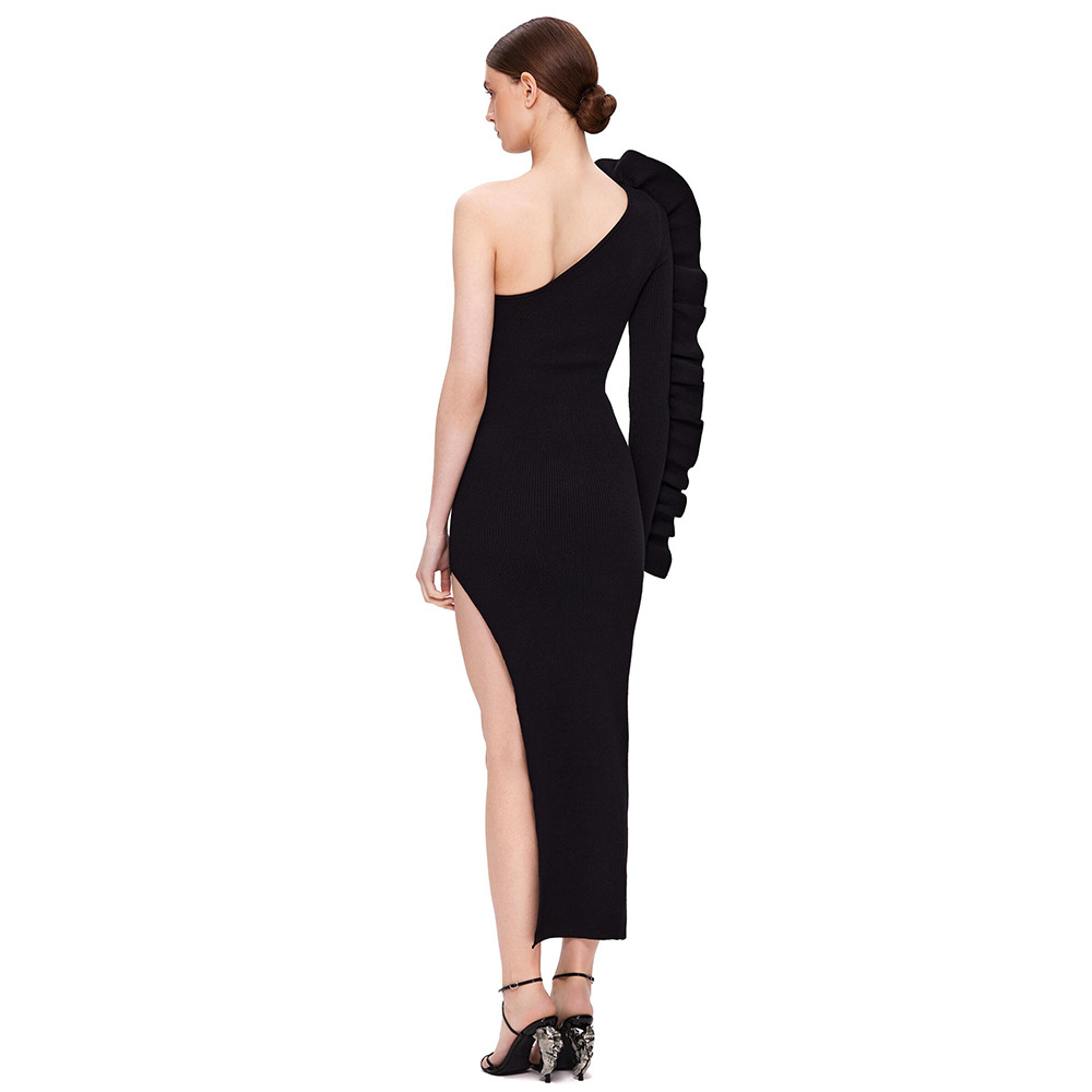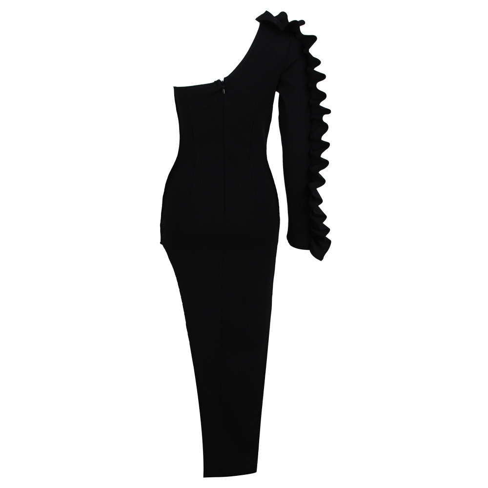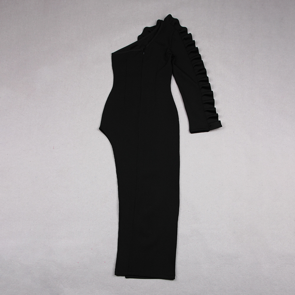 Black Single Sleeve Oblique Shoulder Flower Tight Split Bandage Dress