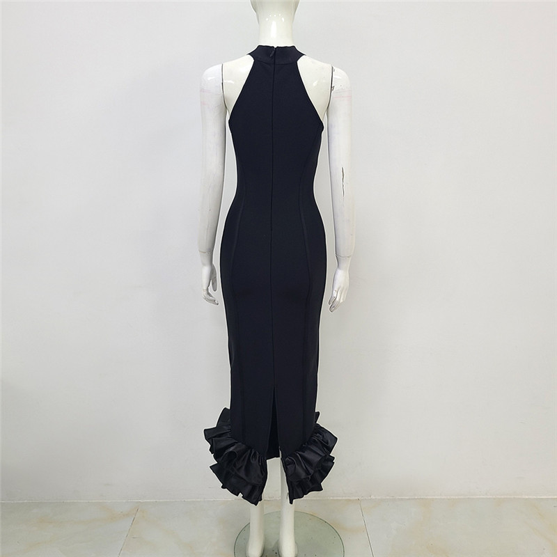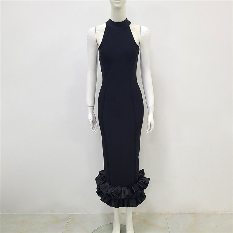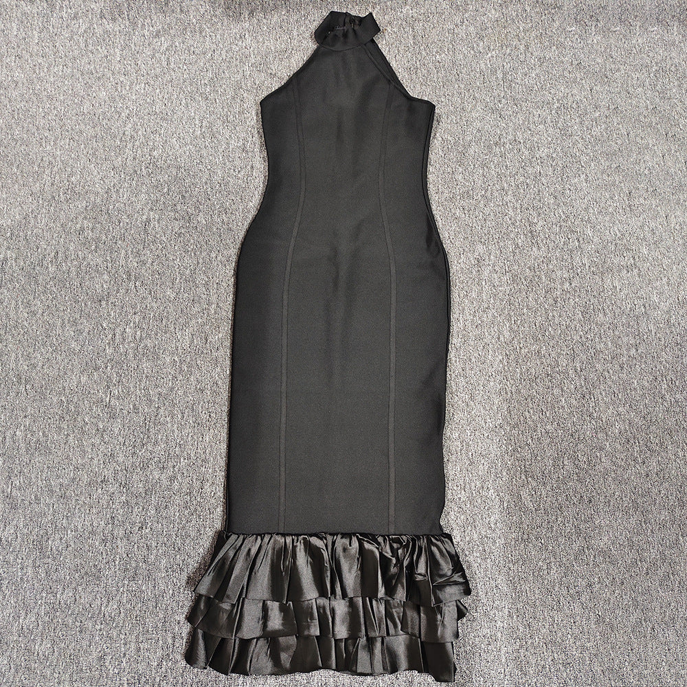 Black Sleeveless Mid-Length Fishtail Folding Slim Bandage Dress Party