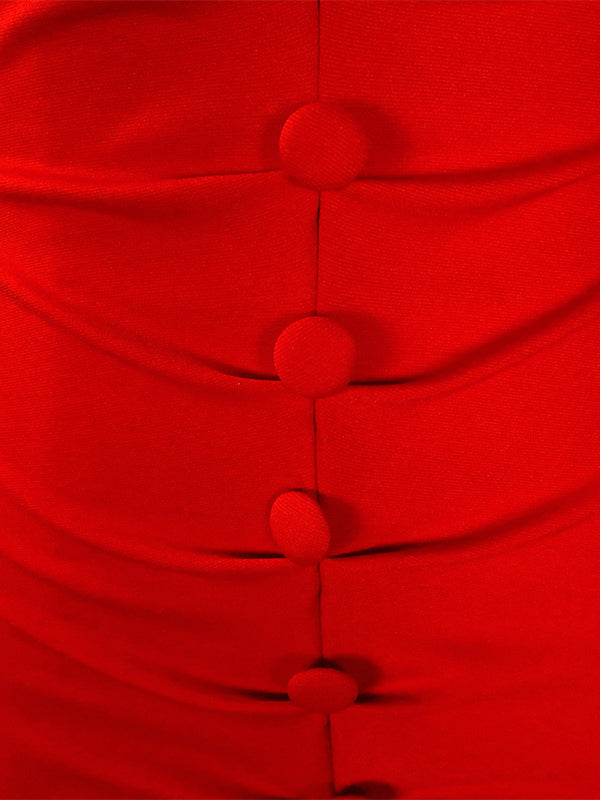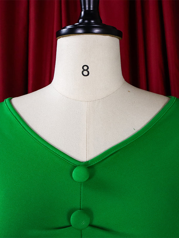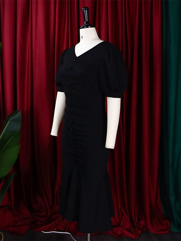 Bodycon Mermaid Pleated Solid Color Zipper V-Neck Midi Dresses
