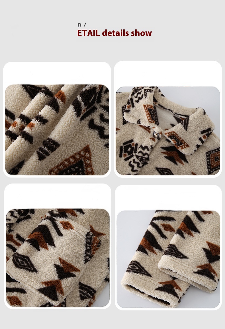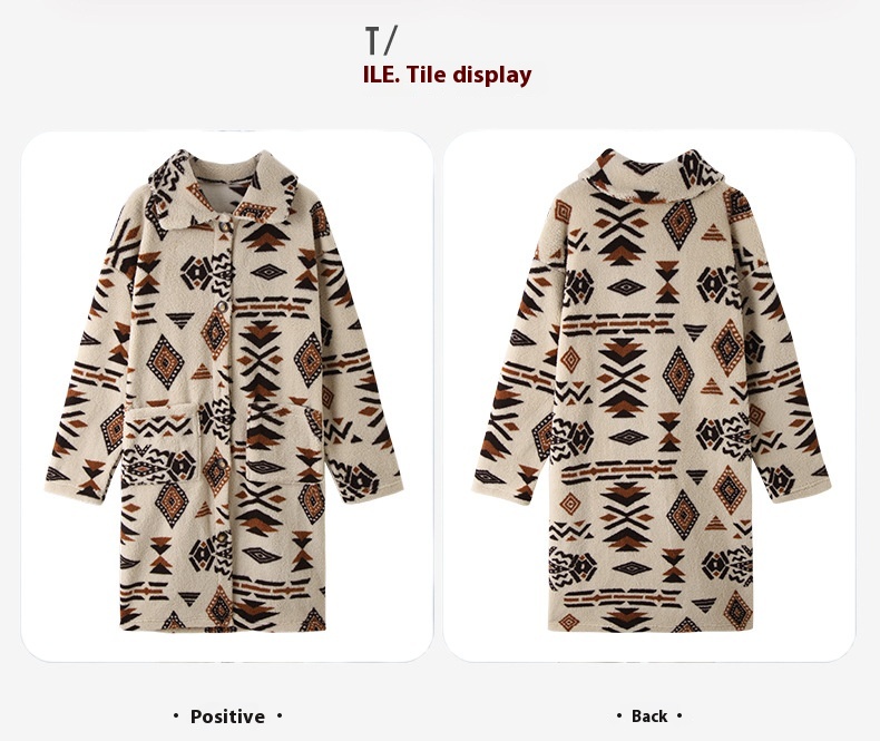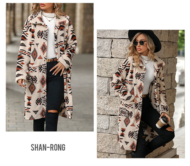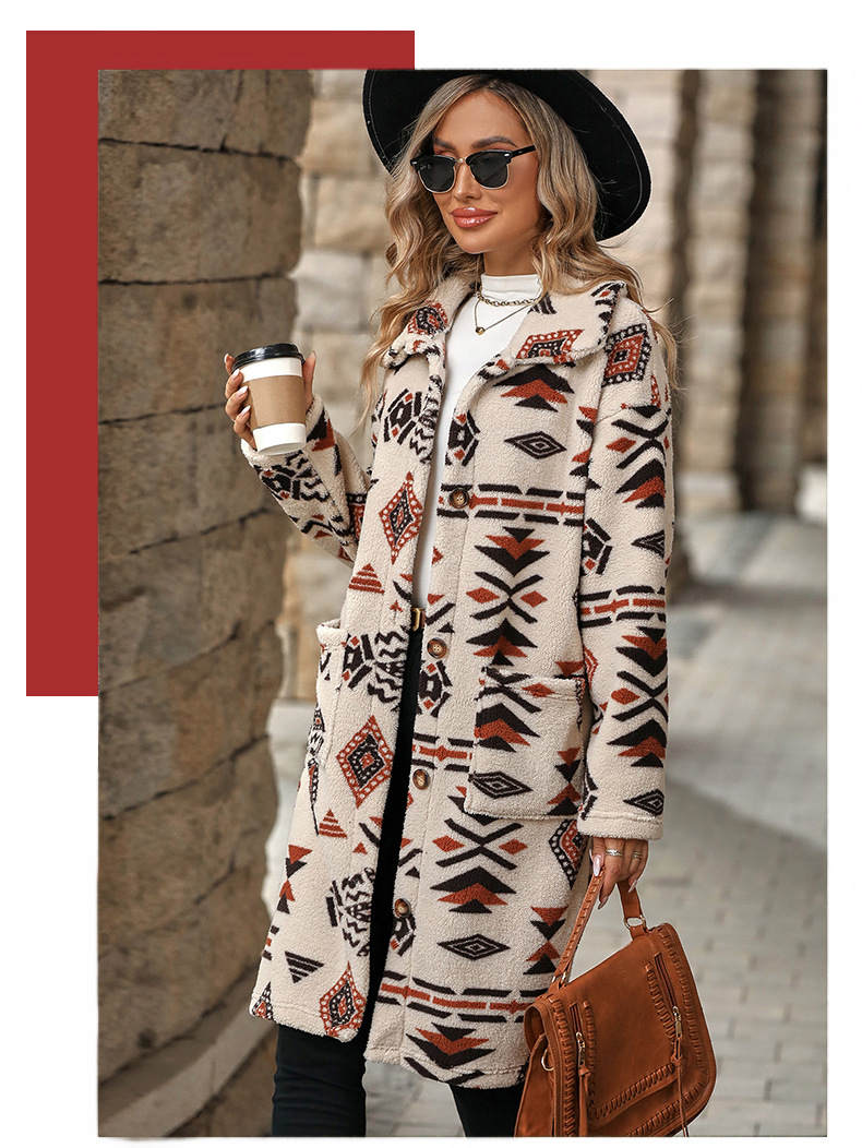 boho autumn and winter women's single-breasted ethnic print plush long overcoat outerwear(2025)