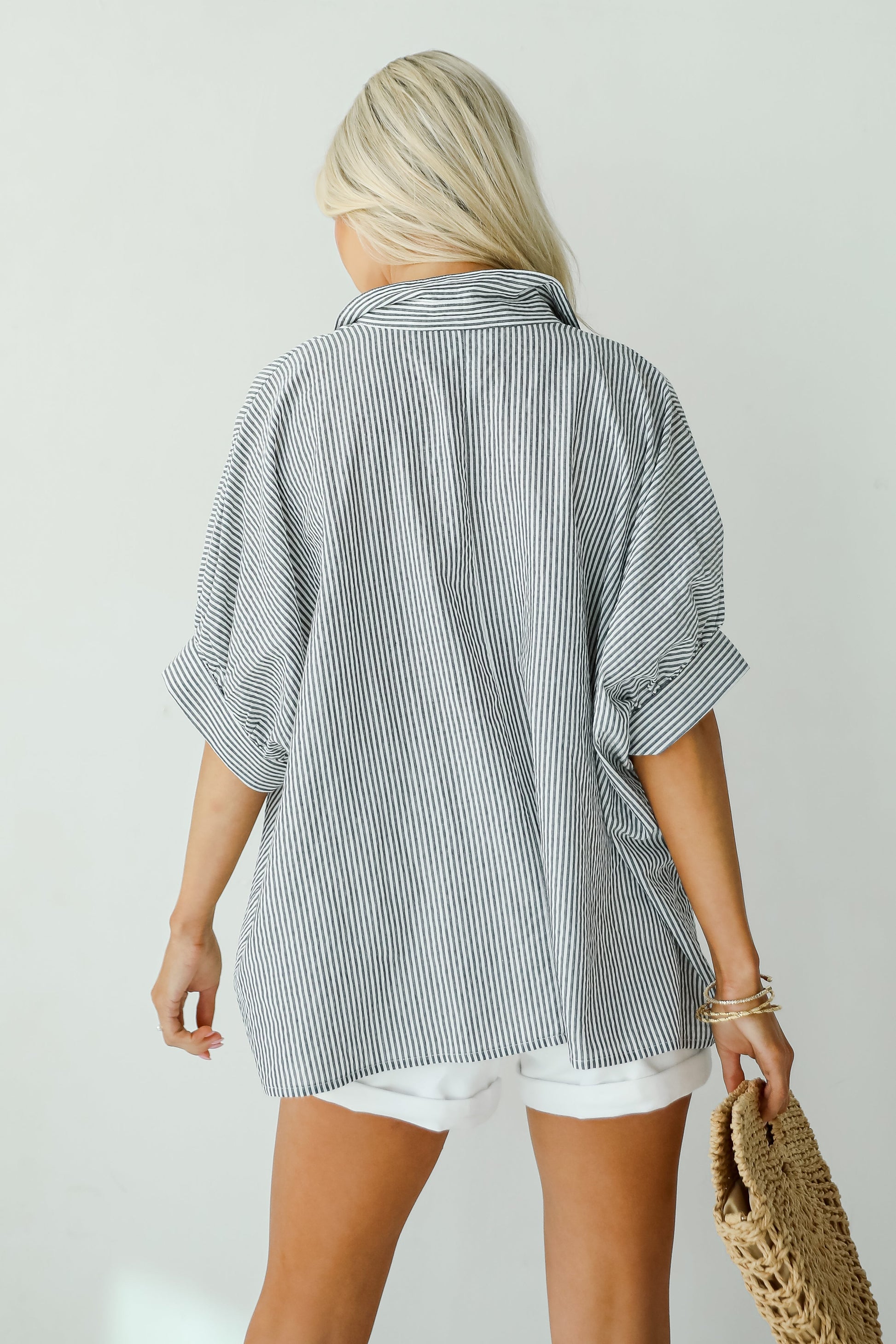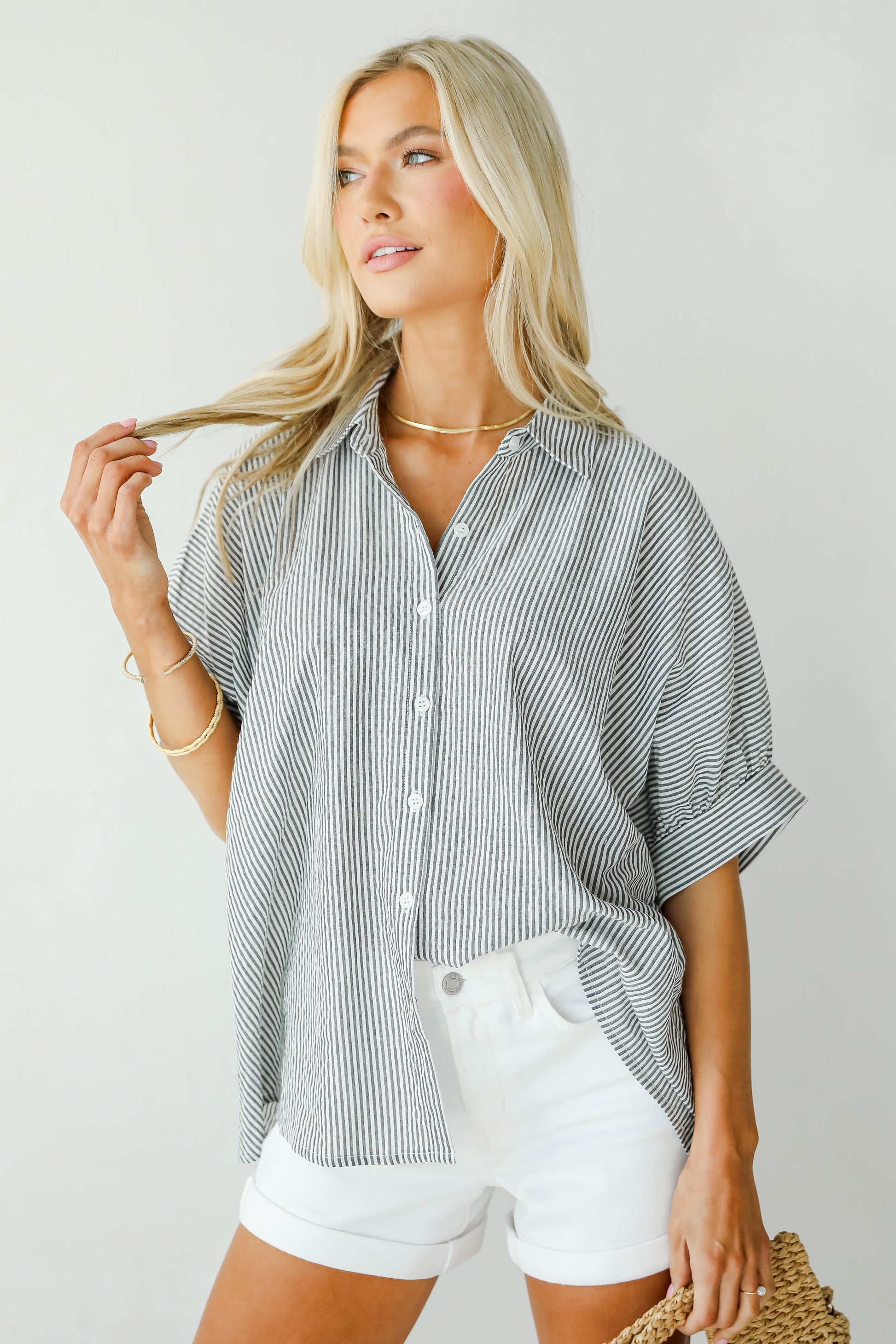 By The Bay Charcoal Striped Seersucker Blouse - DU DEAL