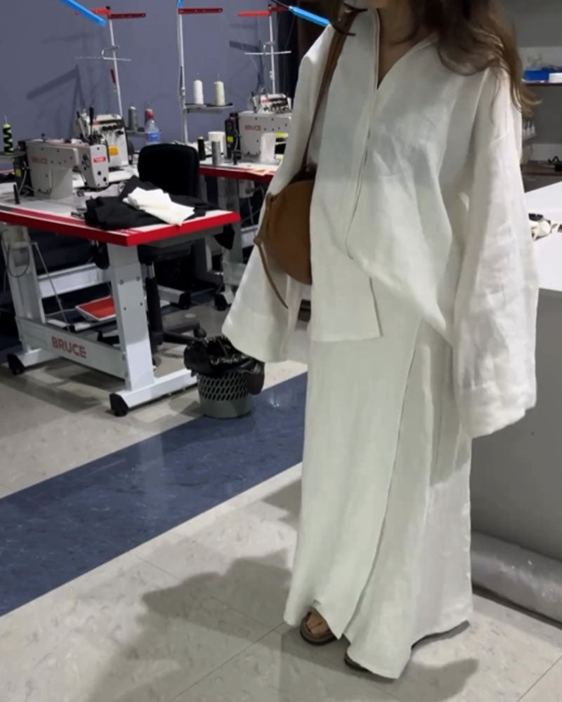 Casual Cotton Linen Shirt & Skirt Two-Piece Set