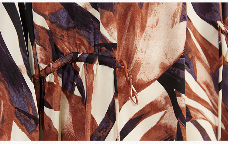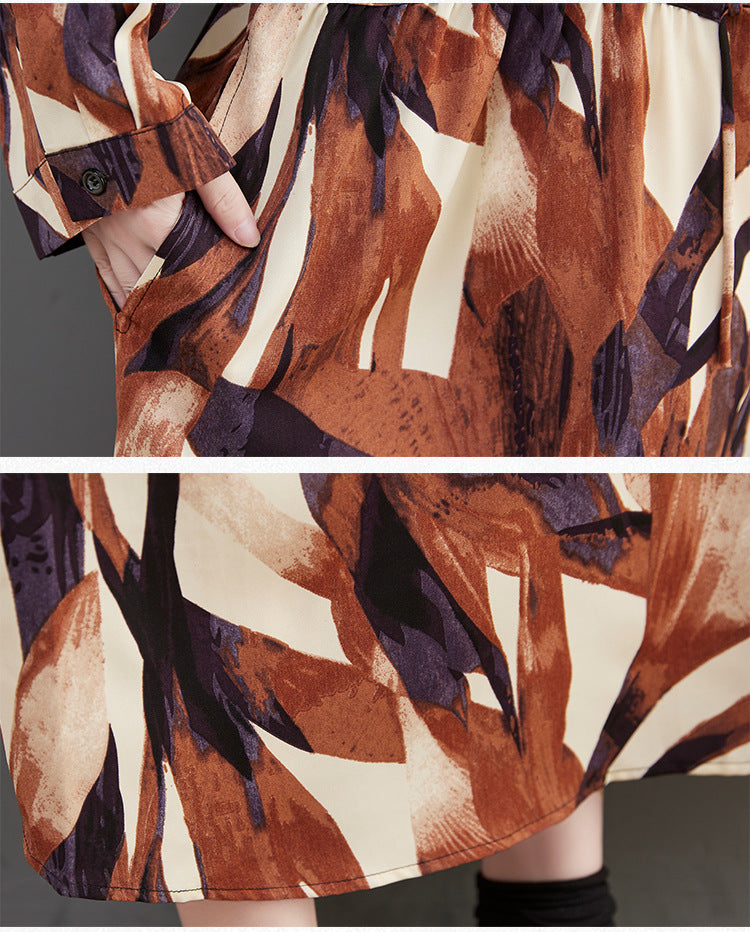 Casual Print Stand Collar Long Sleeve Midi Dress