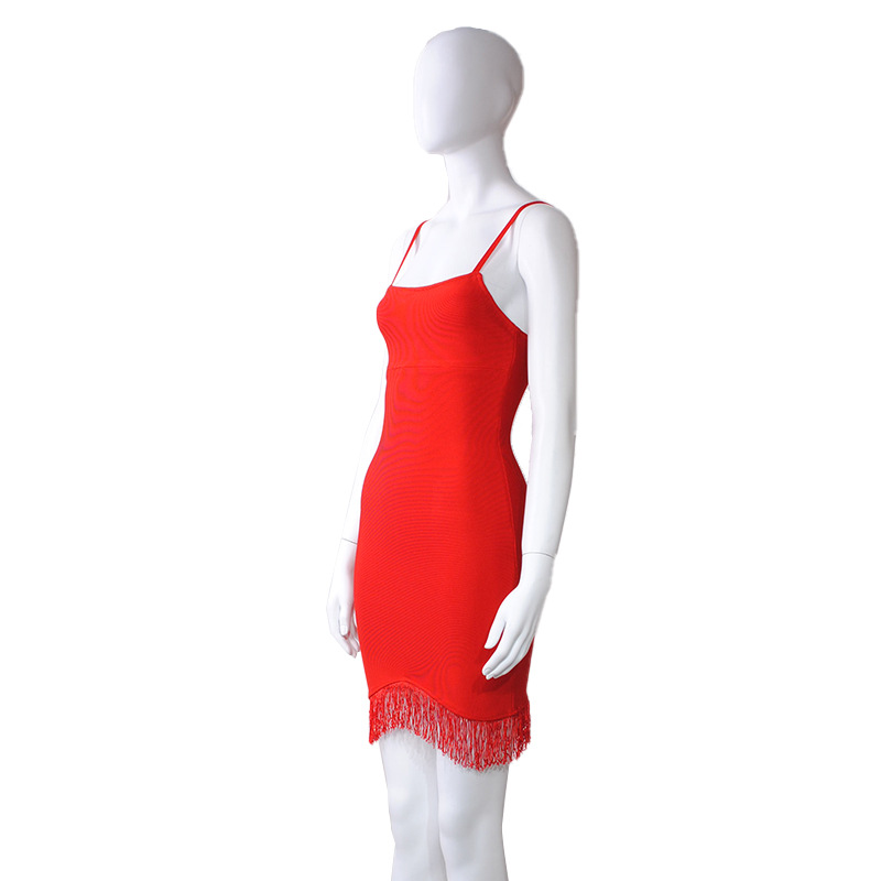 Christmas Red Dresses Female Sexy Tassel Bandage Dress Party