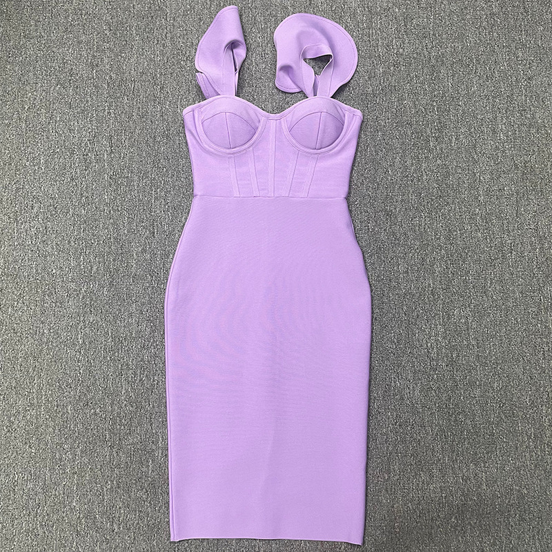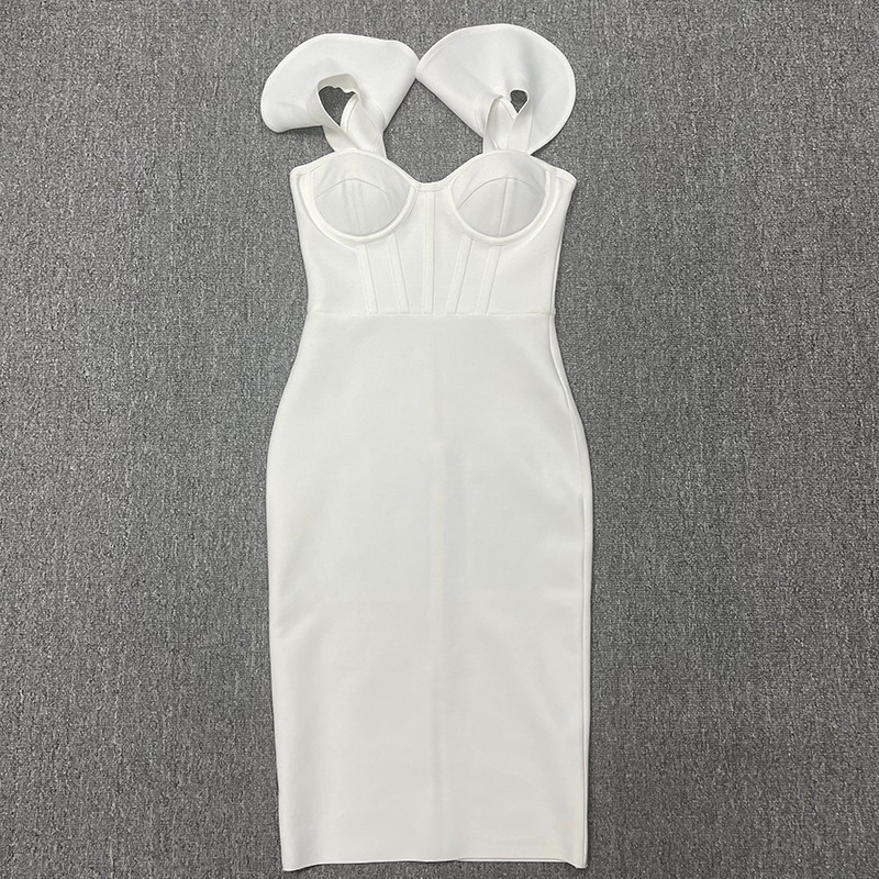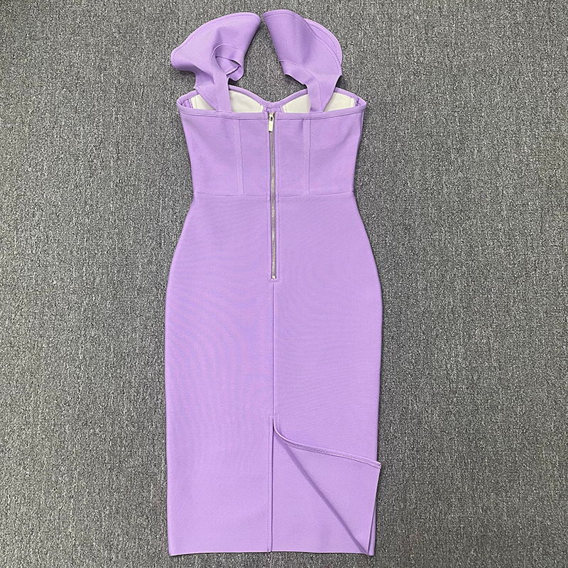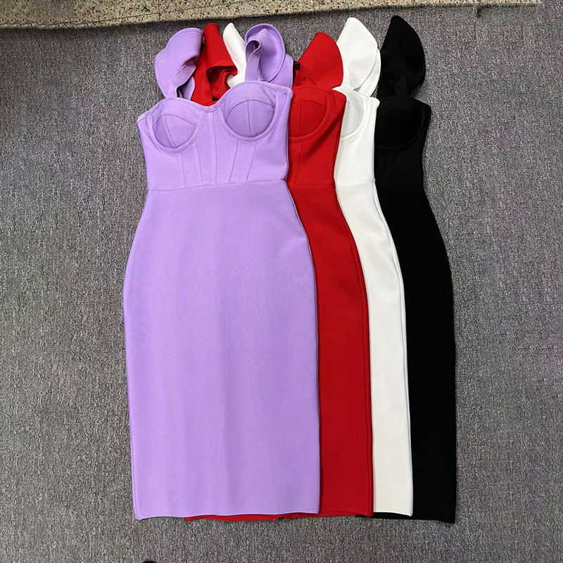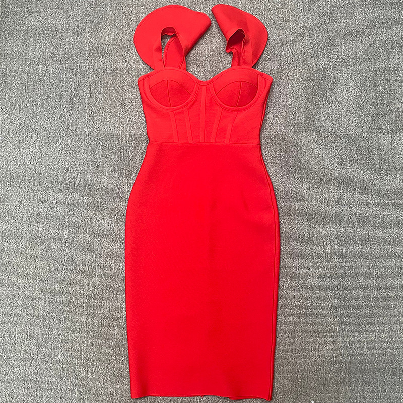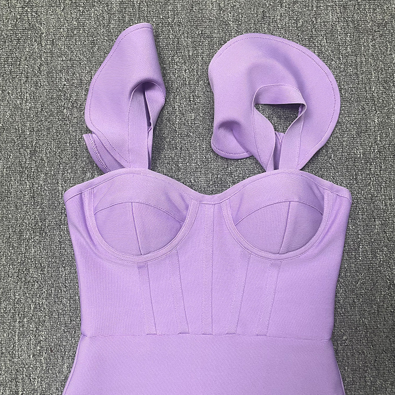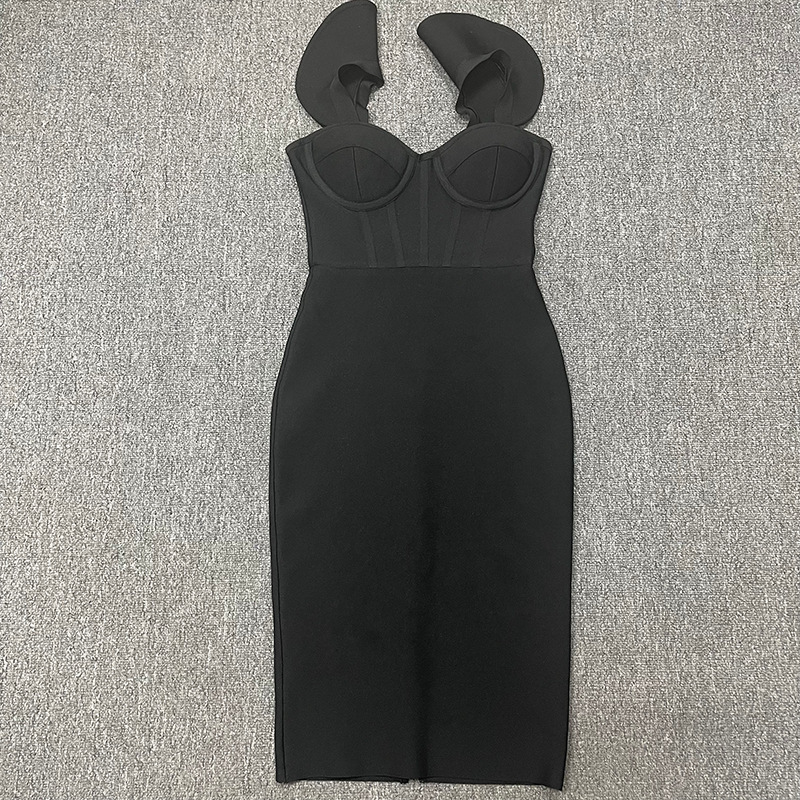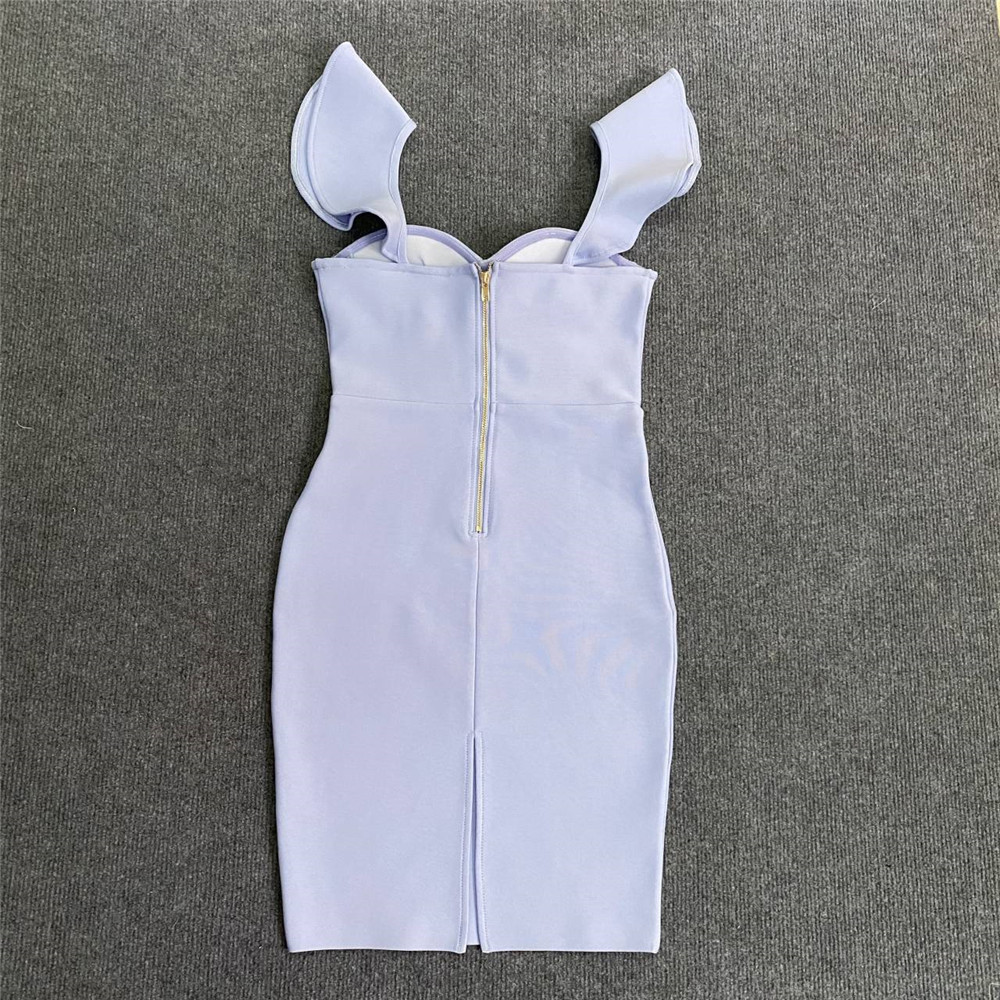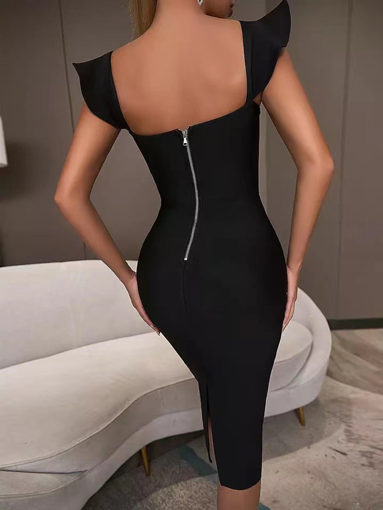 Classic Square Collar Ruffle Sleeve Stretch Bandage Dress Party
