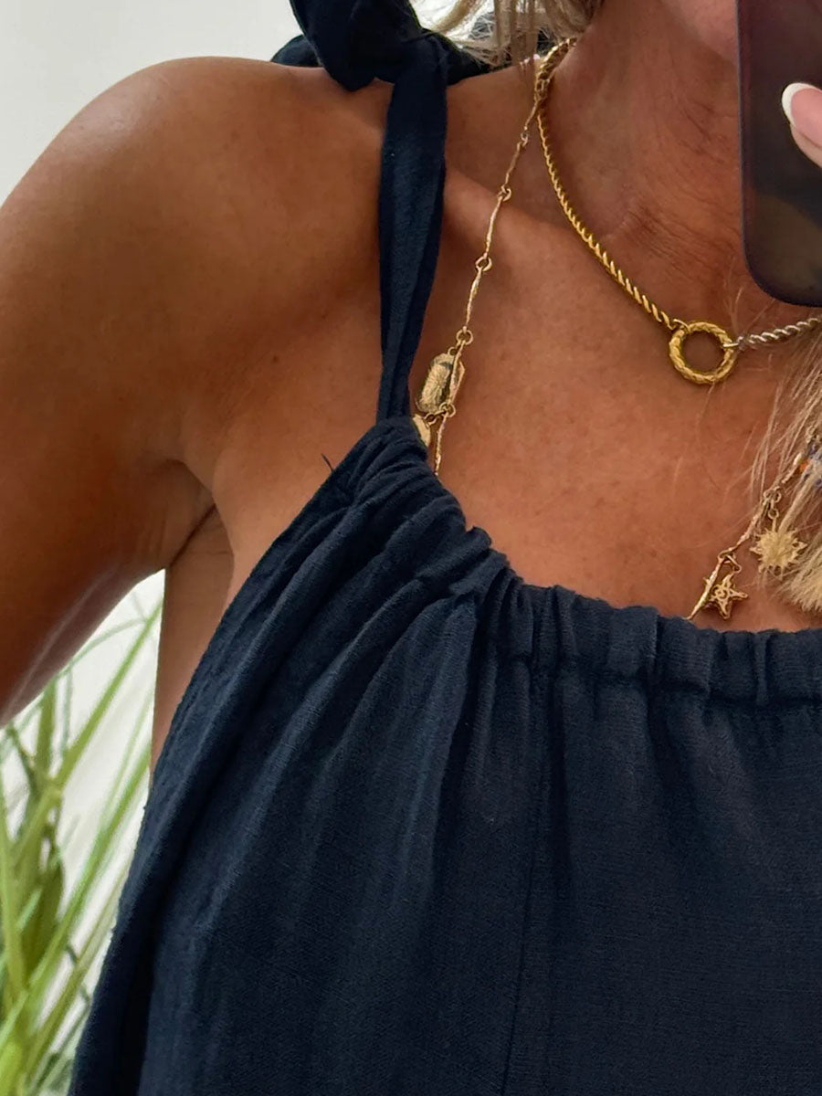 Cotton and linen casual jumpsuit