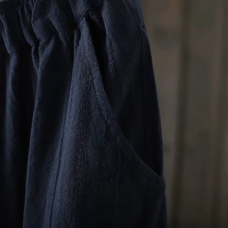 Cotton Linen Vertical Stripe Casual Skirt