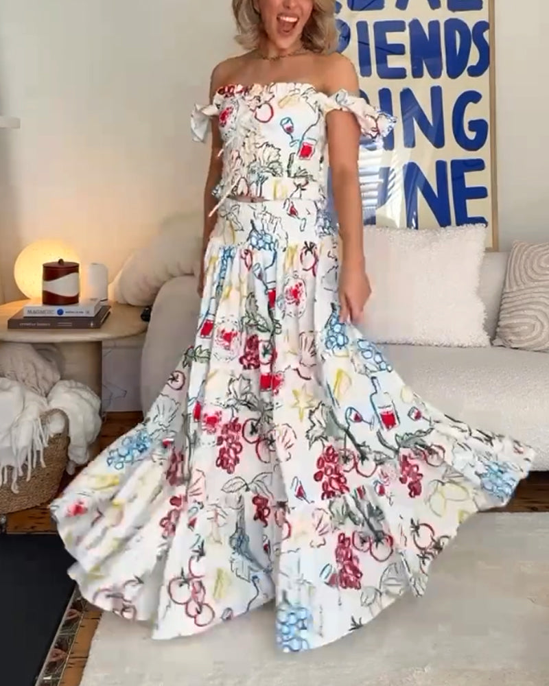 Cute Graffiti Top & Skirt Two-Piece Set