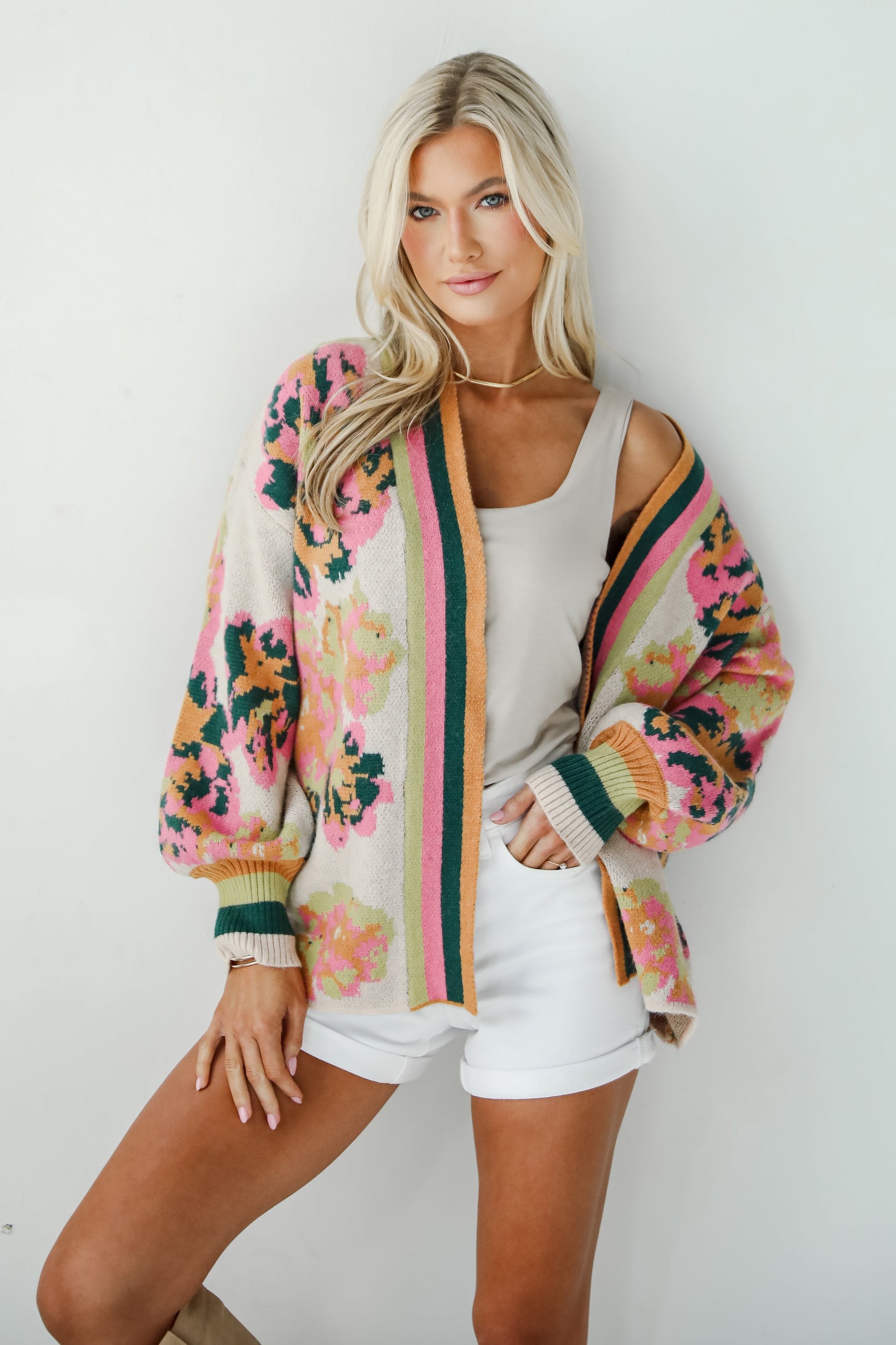 Chic and effortlessly comfortable. the Exceptionally Confident Taupe Sweater Cardigan was made to make you feel your best! Featuring a bold and vibrant abstract print. this cardigan combines rich hues and modern design to create a standout piece. The soft. knitted fabric ensures warmth and comfort. while the relaxed fit provides easy layering options. With an open front and long sleeves. it's perfect for adding a touch of personality to any outfit. Pair it with jeans or a simple dress for a playful yet stylish look that's sure to turn heads!