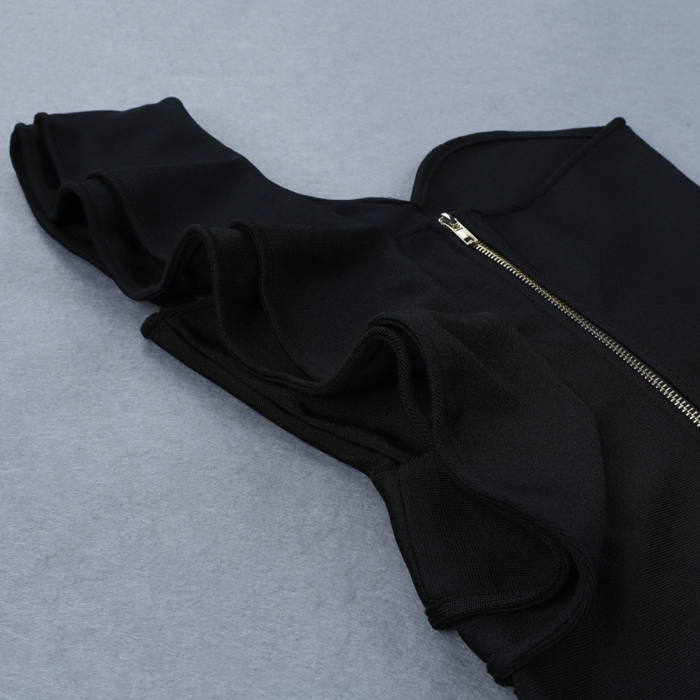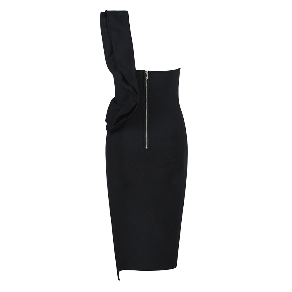 Design 3D Ruffled Sloping Shoulder Dress Slit Slim Bandage Dress