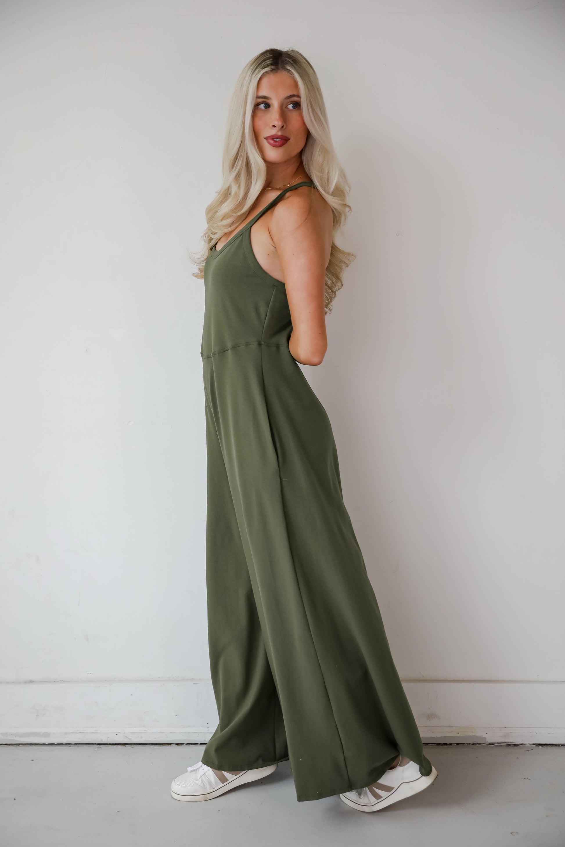 Effortlessly Delightful Olive Wide Leg Jumpsuit