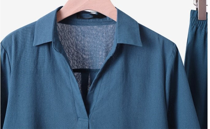 Product Name :Elegant Shirt Wide Leg Pants Solid Color 2pieces-Suit