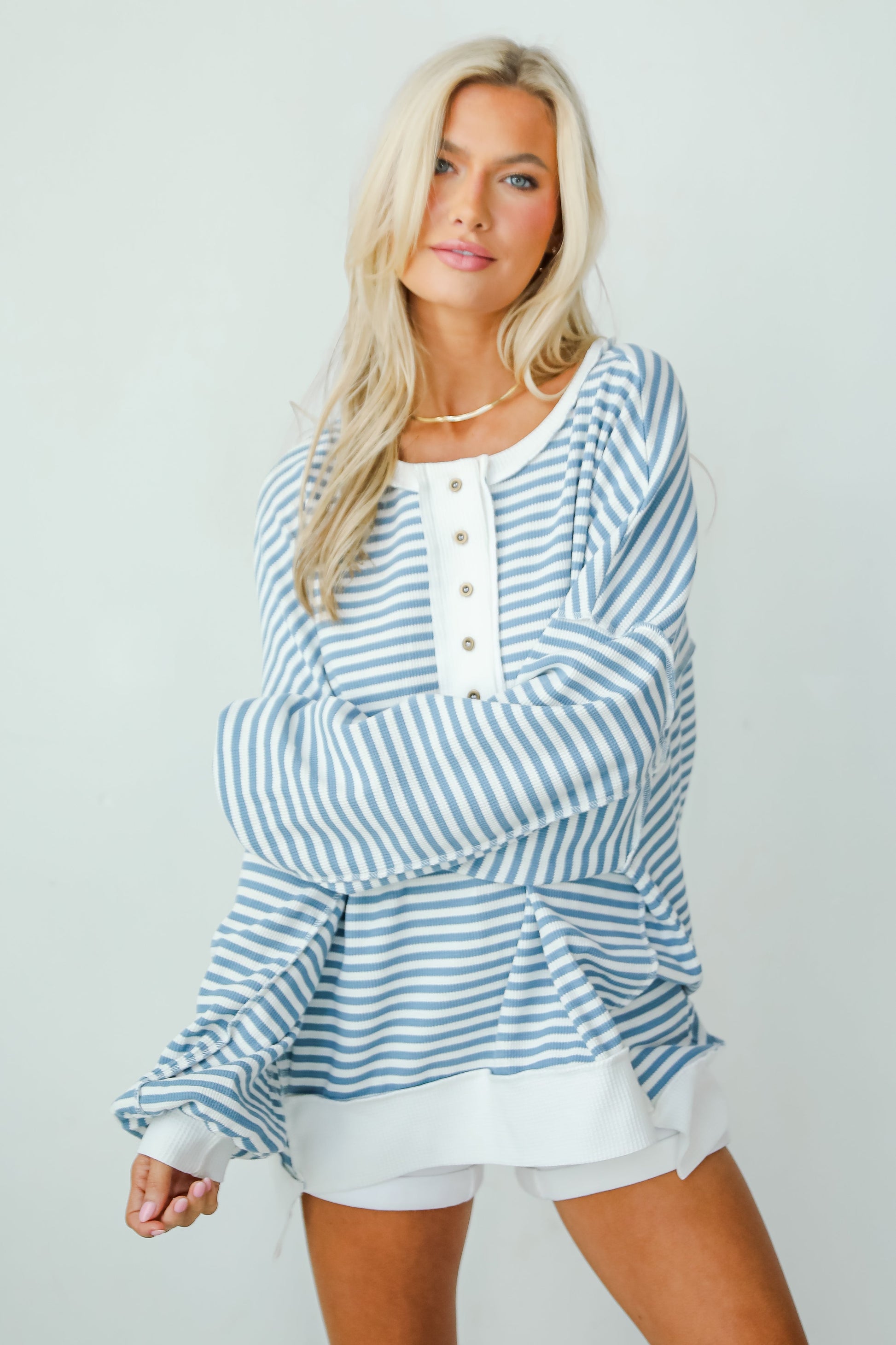 Enviably Cozy Striped Oversized Waffle Knit Top