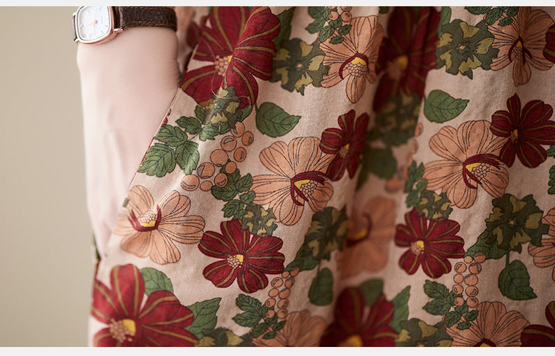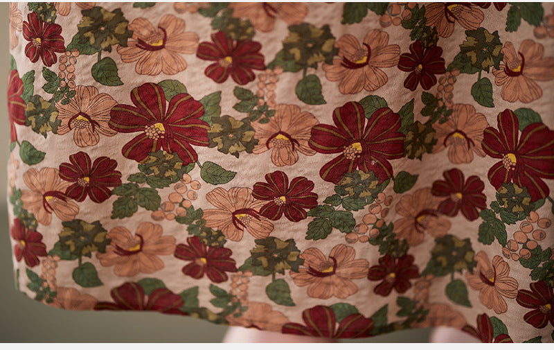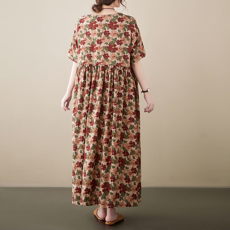Ethnic Style Floral Print Short Sleeve Round Neck Maxi Dress