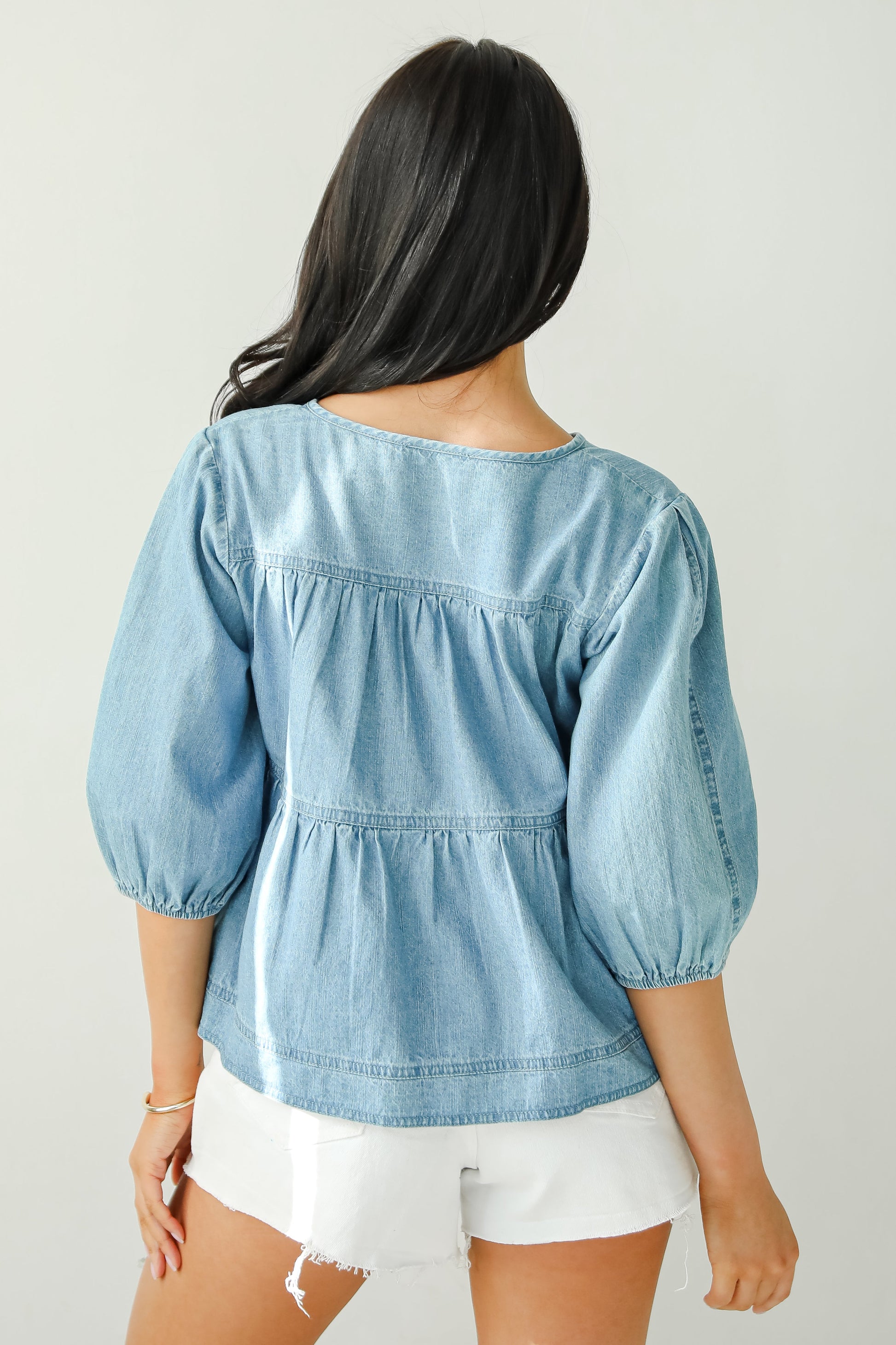 Exceptionally Dreamy Washed Denim Babydoll Blouse