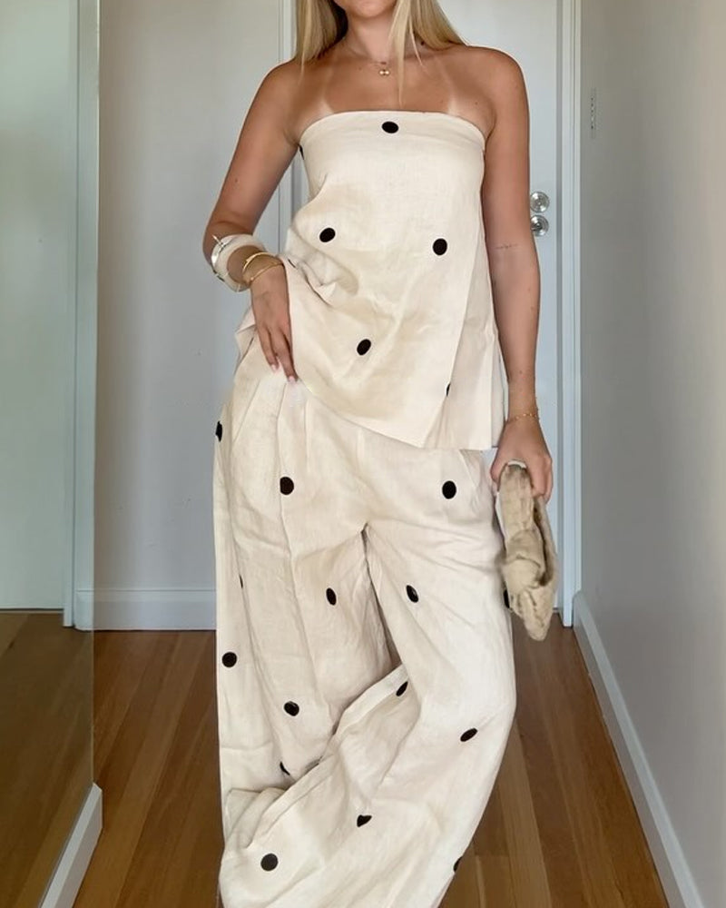 Fashion Commuter Dot Top & Pants Two-Piece Set