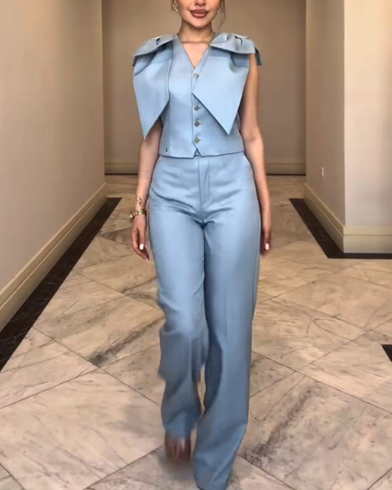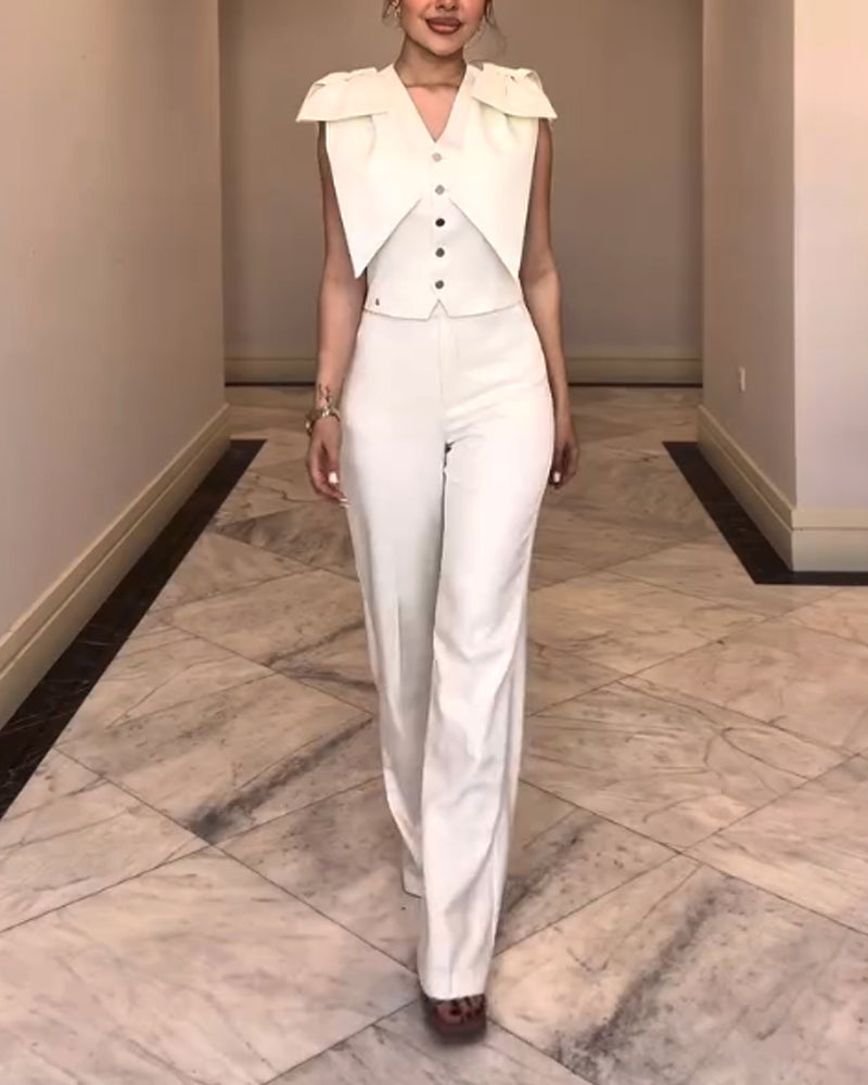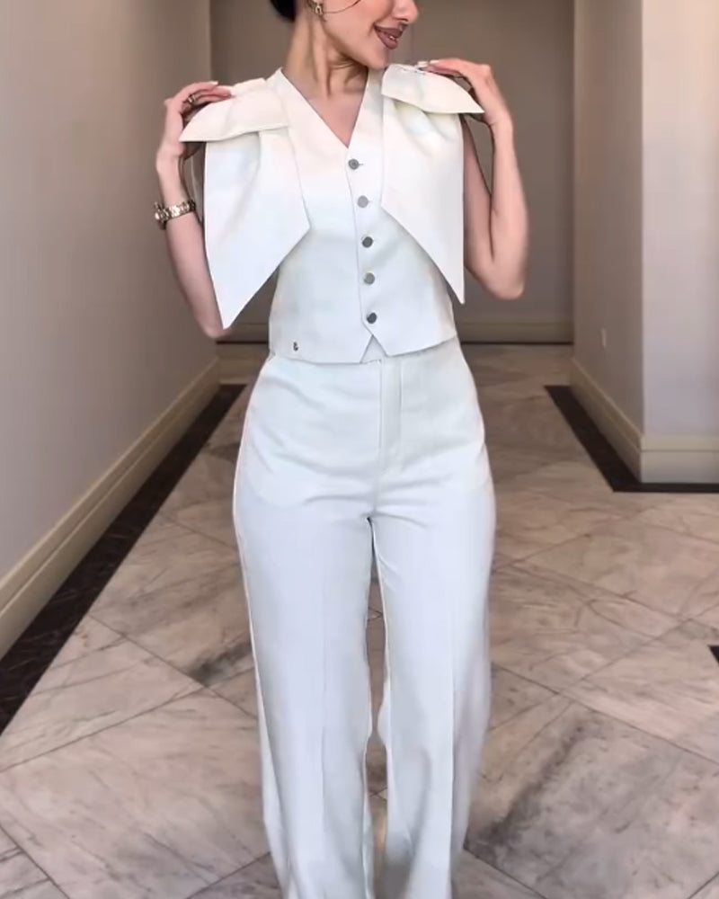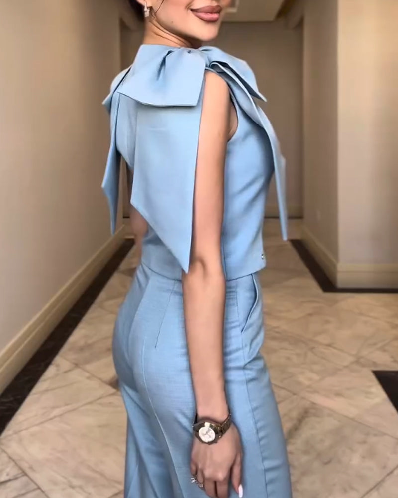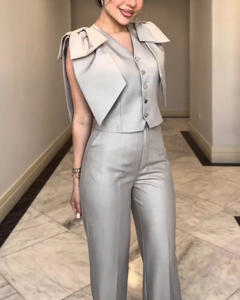Fashion Commuter Lace-Up Top & Pants Two-Piece Set