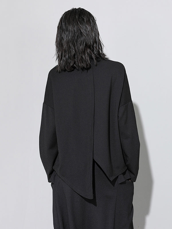 Fashion Loose Long Sleeves Split-Front Round-Neck T-Shirts Tops