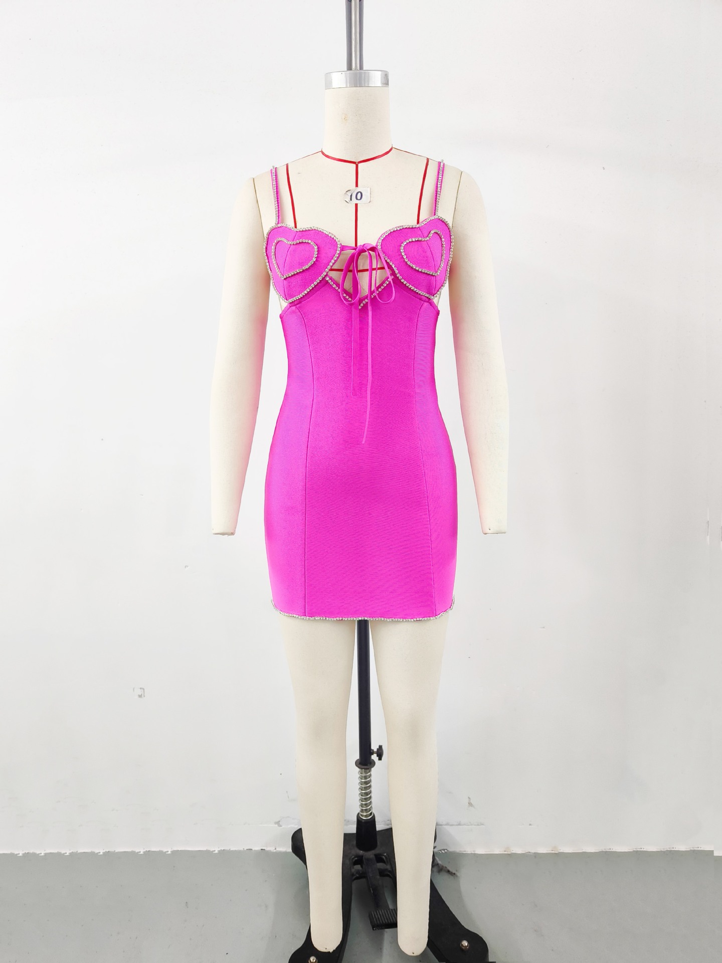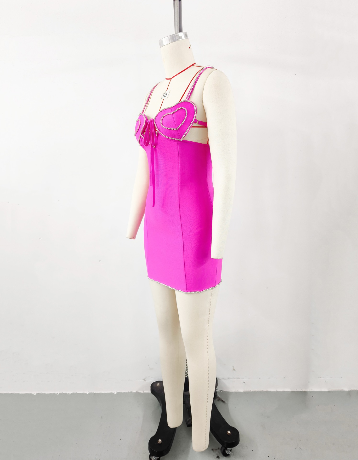 Female Summer Heart Shape With Diamond Sling Dress Sweet Style