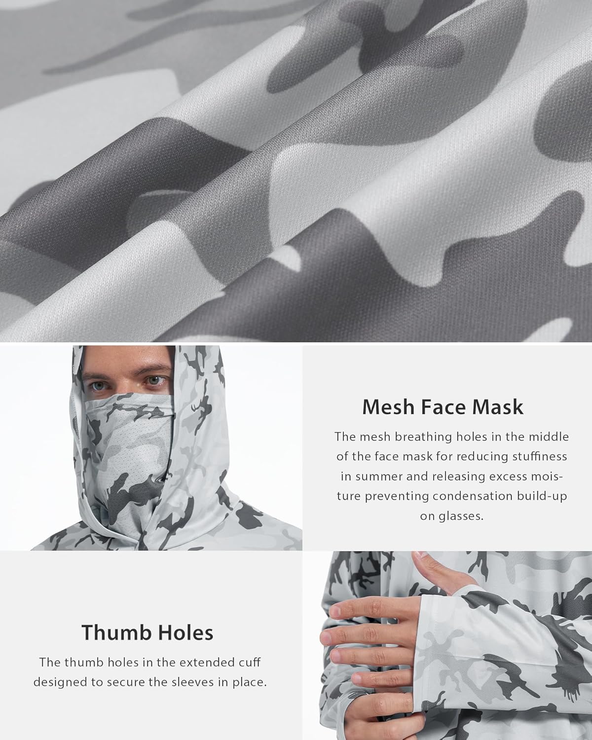 FISHEAL Men's UPF 50+ Thumbholes Fishing Hoodie with Mesh Face Mask
