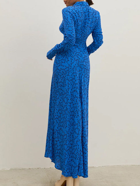 Soft florals in rich blue add a dreamy touch to this versatile piece. The slit detail introduces an element of surprise. blending style and comfort for any occasion.