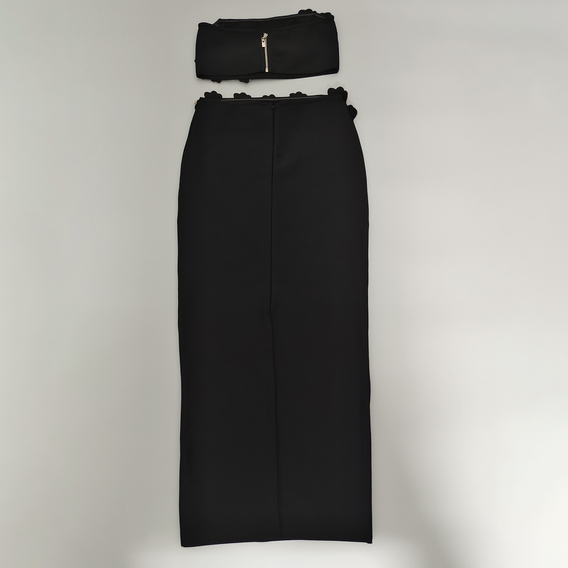 Flower Rhinestone Sexy Bandage Suit Banquet Party Two-Piece Set