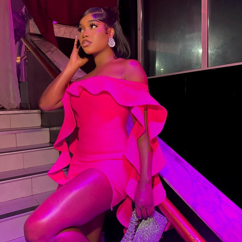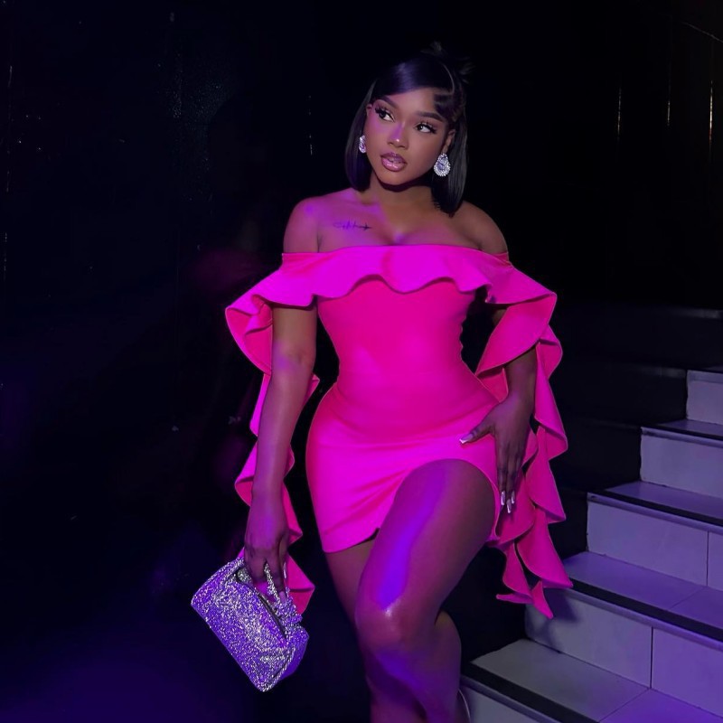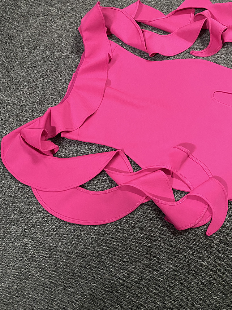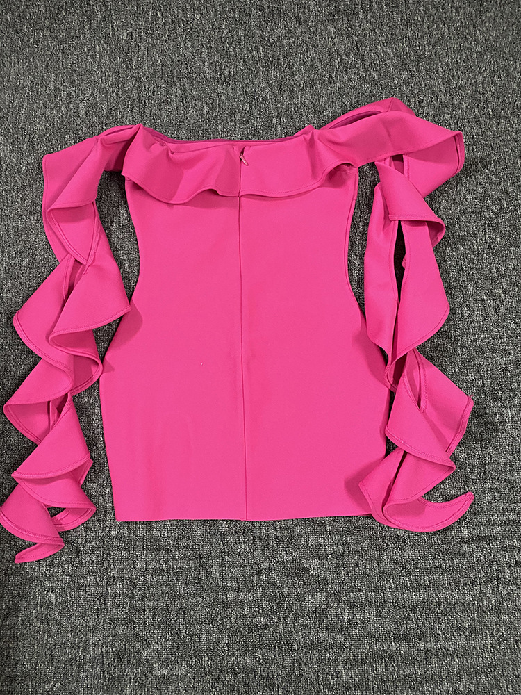 French Style Off-Shoulder Ruffled Rose Red Evening Bandage Dress