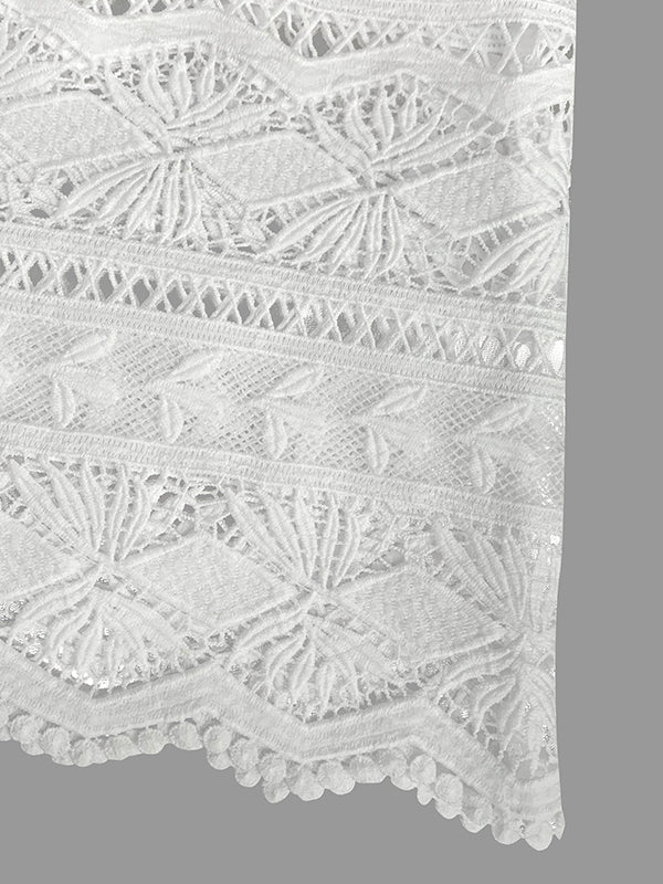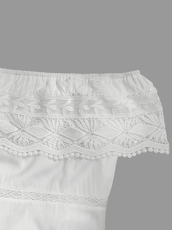 High Waisted Short Sleeves Hollow Solid Color Split-Joint Off-The-Shoulder Maxi Dresses