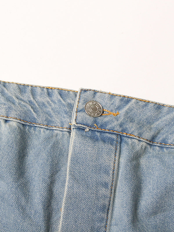 High Waisted Wide Leg Buttoned Hollow Pockets Split-Joint Tube Jumpsuits