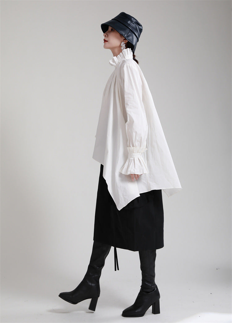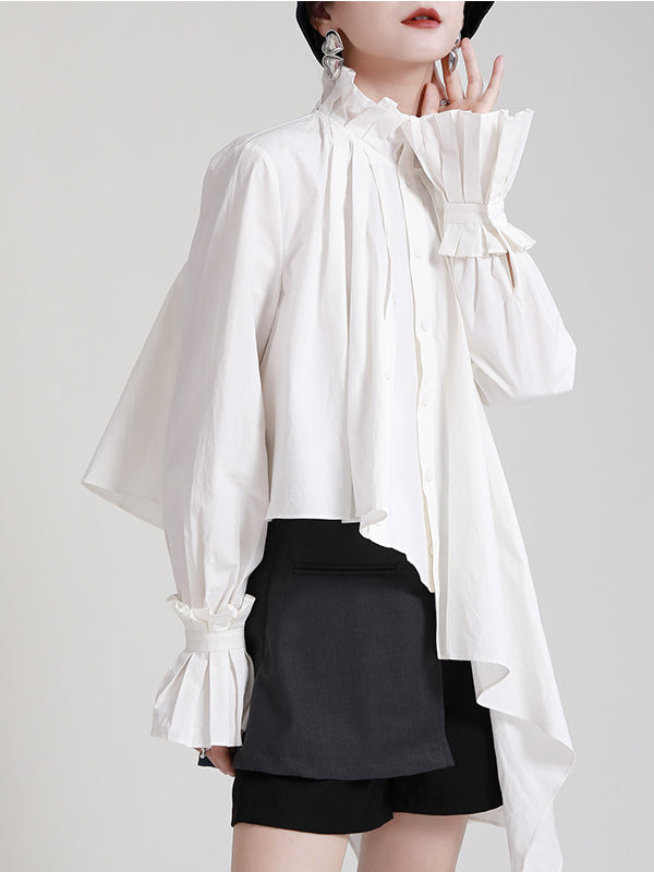 Irregular Solid Color Stand Collar Long Sleeve Shirt