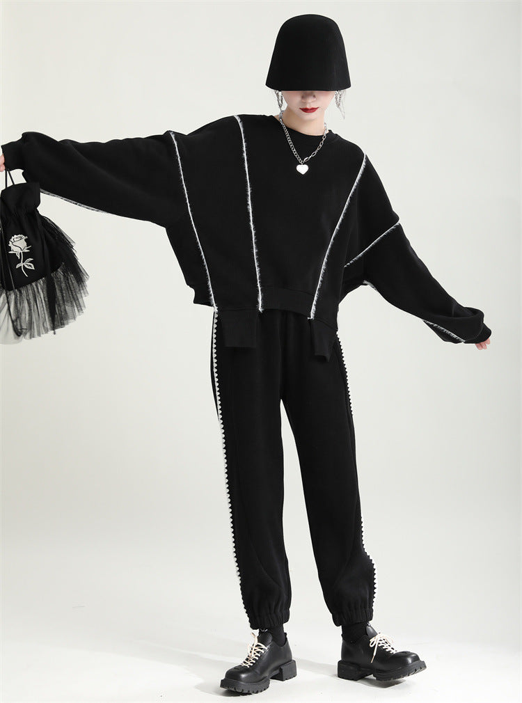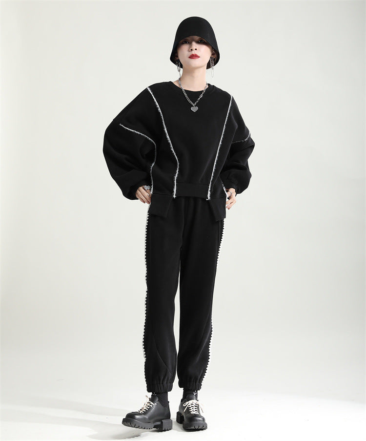 Irregular Splicing Round Neck Long Sleeve Velvet Sweatshirt