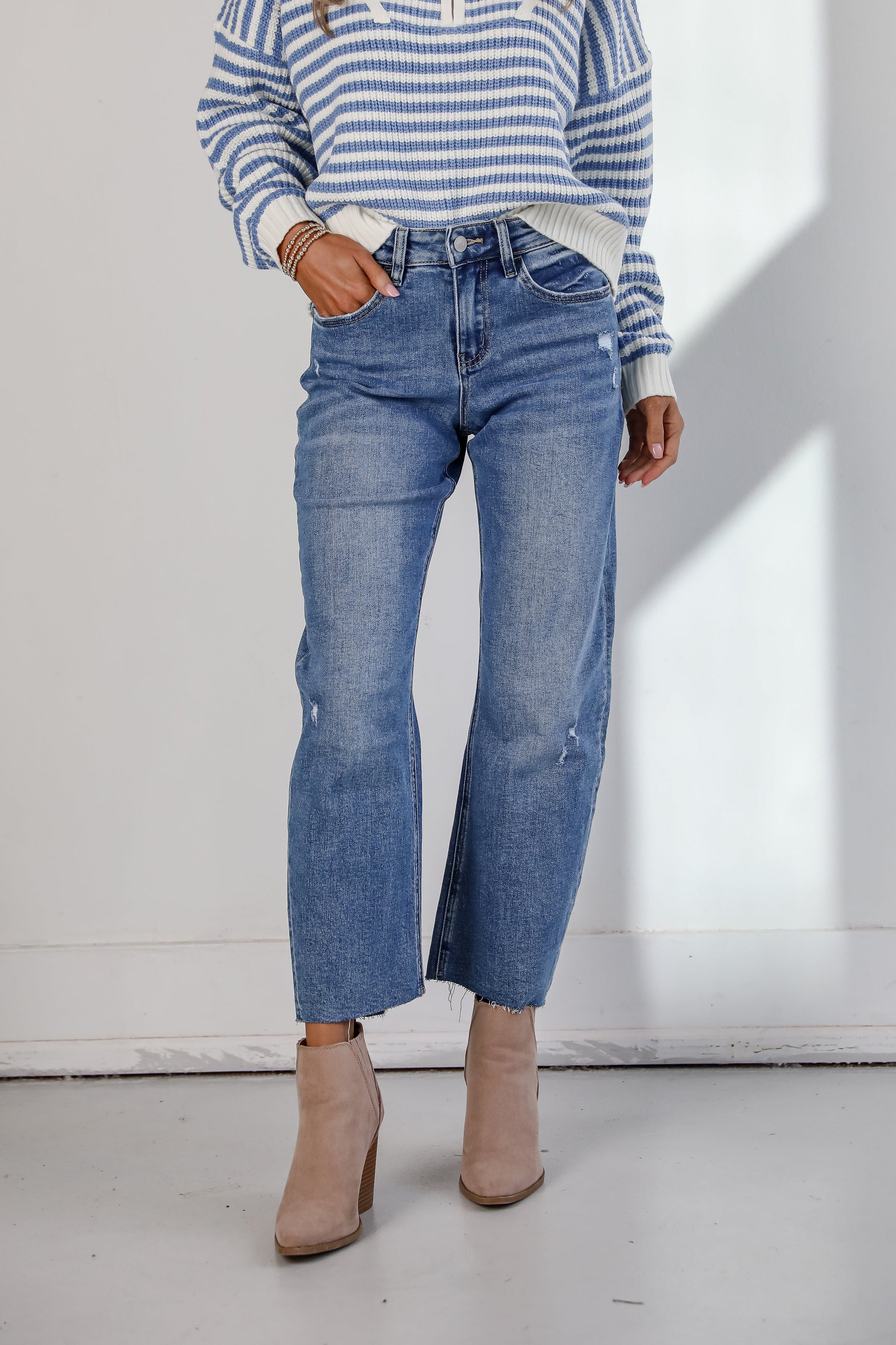 Upgrade your denim game with the Jaci Medium Wash High-Rise Barrel Jeans. a contemporary twist on a classic silhouette! Designed with a flattering high-rise waist and a unique barrel leg. these jeans offer a relaxed yet structured fit that's perfect for everyday wear. Crafted from premium medium-wash denim. they strike the perfect balance between softness and durability. making them as comfortable as they are stylish. Subtle fading and whiskering add a touch of vintage-inspired charm. while the cropped length highlights your favorite footwear. from sneakers to ankle boots!